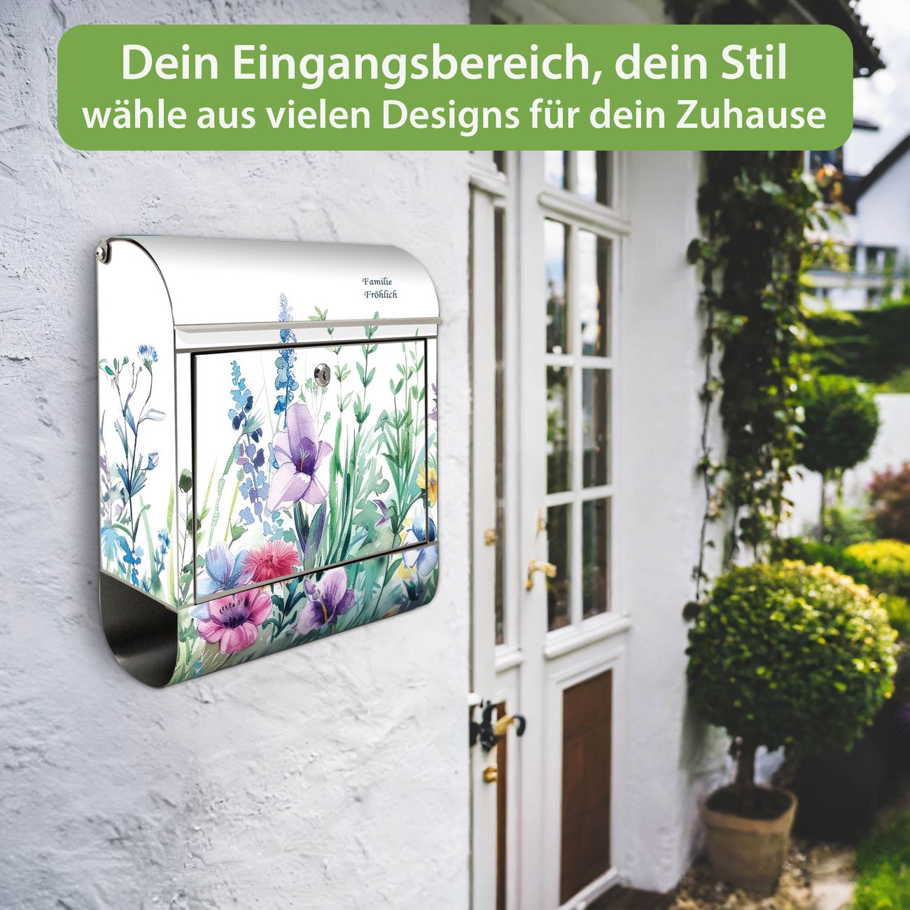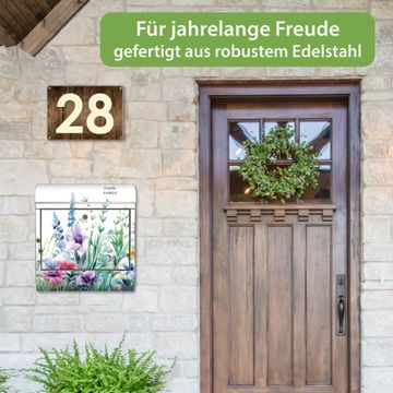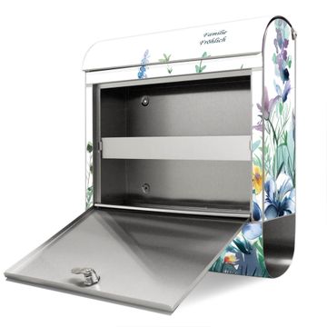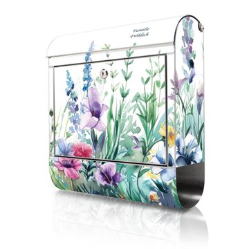 Wandbriefkasten Edelstahl Motiv Blumenwiese in Aquarell