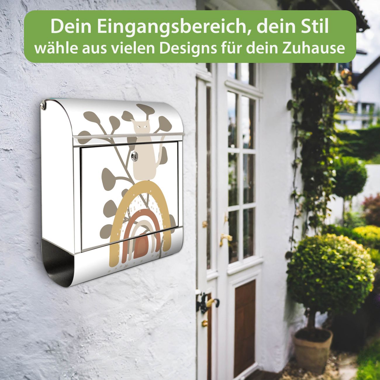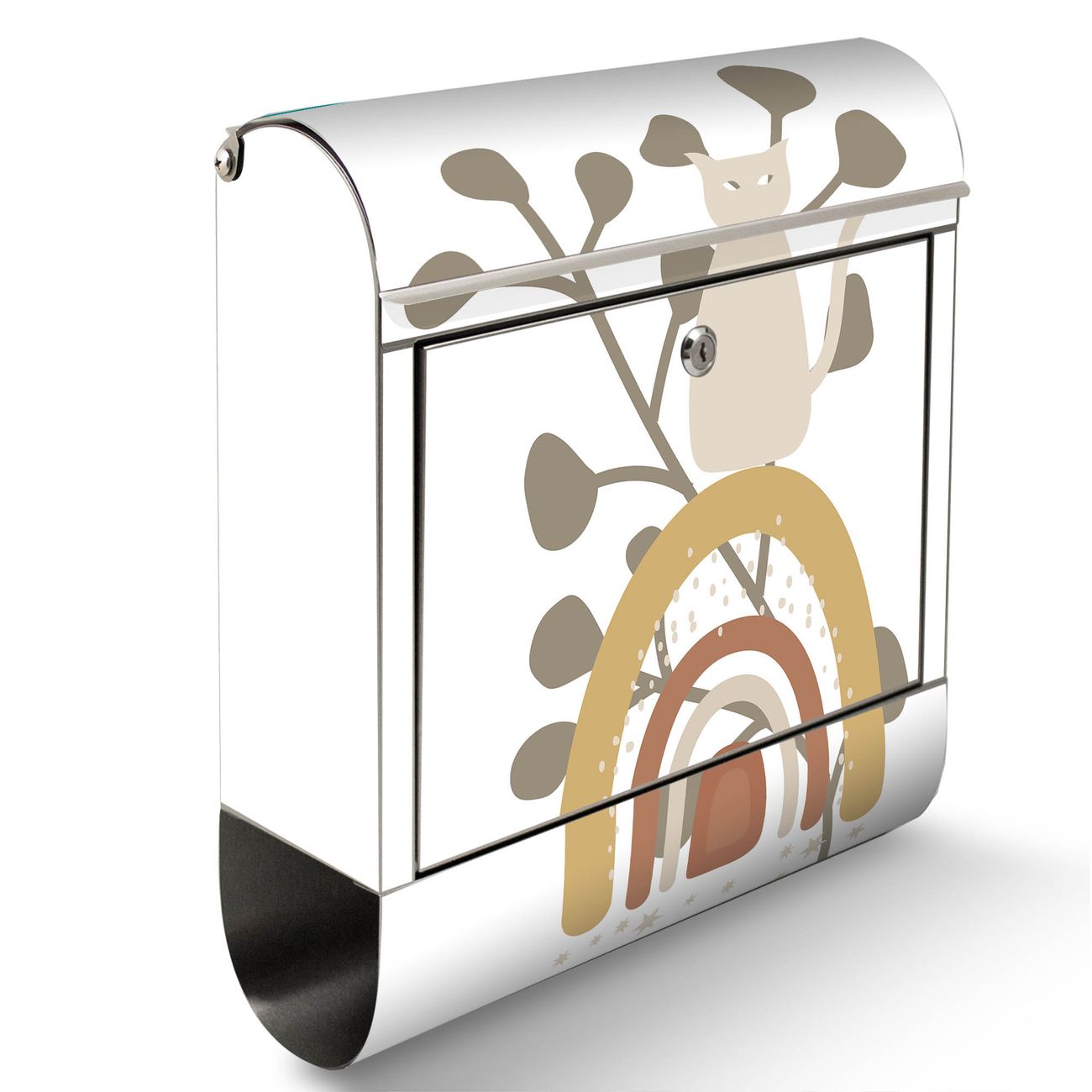 Wandbriefkasten Edelstahl Motiv Boho Katze Regenbogen
