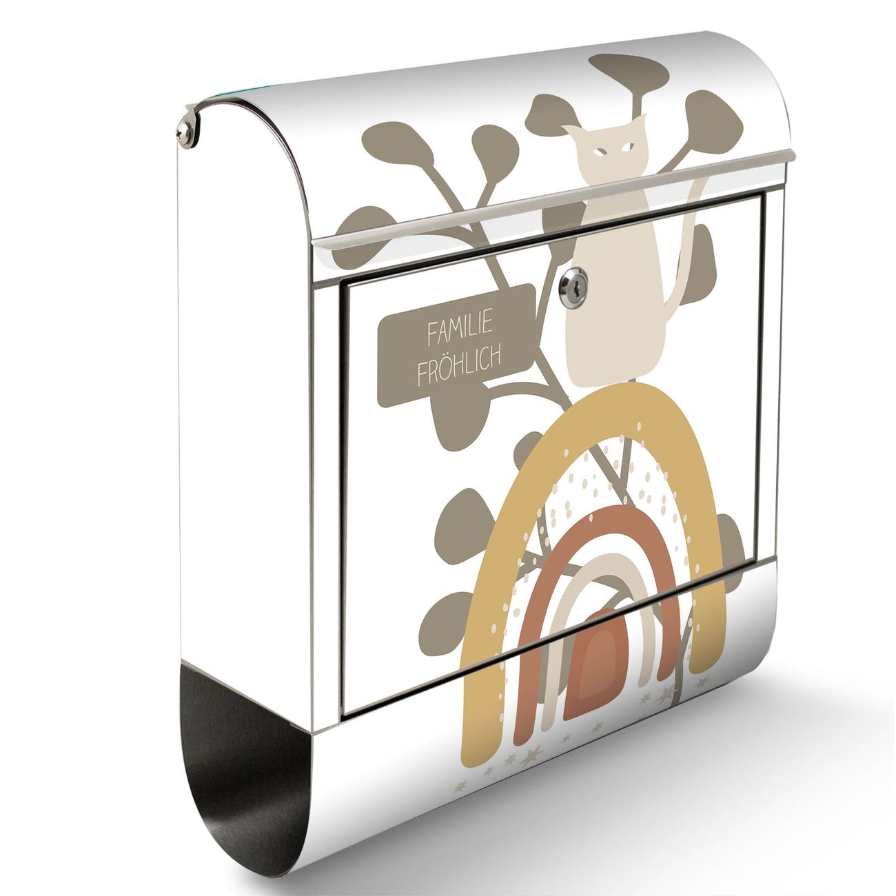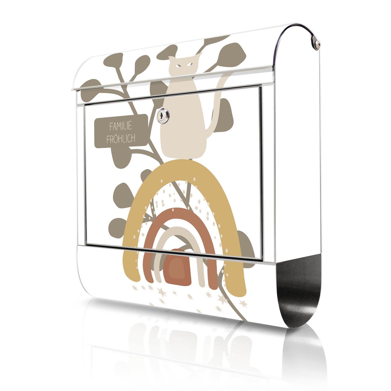 Wandbriefkasten Edelstahl Motiv Boho Katze Regenbogen