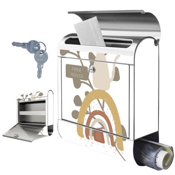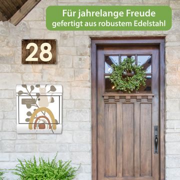 FUNKTION: Der banjado Edelstahl Briefkasten mit Motiv Motiv Boho Katze Regenbogen bietet Ihnen mit seinem Fassungsvermögen genügend Platz auch für große A4 Sendungen. Das integrierte Zeitungsfach eignet sich hervorragend um unkompliziert die Tageszeitung zu fassen. Auf Wunsch können Sie bei uns den passenden Ständer kaufen und so aus dem Wandbriefkasten einen Standbriefkasten machen. DESIGN: Der Motivbriefkasten hat ein sehr ansprechendes und ausgefallenes Design, damit entlocken Sie Ihren Nachbarn und dem Postboten ein Lächeln. Heben Sie Sich ab von der tristen grauen Masse ohne auf Funktionalität zu verzichten. DETAILS: Der Design Briefkasten mit Motiv Motiv Boho Katze Regenbogen besteht aus hochwertigem 18/0 Edelstahl. Das Motiv besteht aus einer wetter- und UV-resistenten Folie, die mit einem Schutzlaminat überzogen ist. Der Briefkasten wird mit Montagematerial und zwei Schlüsseln geliefert. NUTZEN: Sie können diesen Briefkasten sowohl als Wandbriefkasten montieren oder einen passenden Ständer auswählen und als Standbriefkasten einbetonieren. Die Größe bietet genügend Platz für Sendungen aller Art, das hochwertige Edelstahl ist rostfrei und die Motivfolie absolut wetterfest. SCHUTZ: Um Ihre Post optimal vor Witterungseinflüssen wie Starkregen zu schützen, empfehlen wir, den Briefkasten geschützt anzubringen. BANJADO: Ihr Briefkasten wird in Sachsen in einer kleinen Manufaktur von Hand veredelt. Die Motivfolie ist lösungsmittelfrei und schutzlaminiert, dies sorgt für einen langen Halt. Wir legen großen Wert auf die Verbindung von Funktionalität und Design. Sie erhalten Handarbeit aus Sachsen.