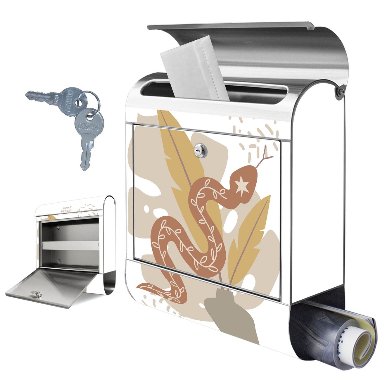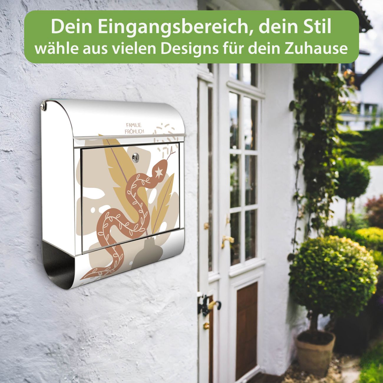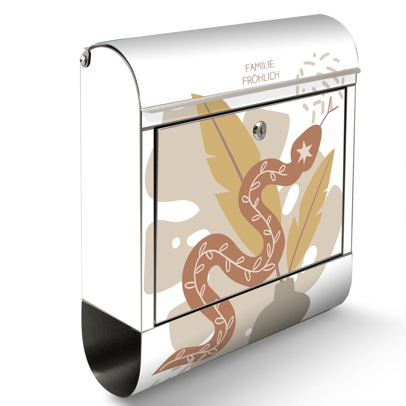 Wandbriefkasten Edelstahl Motiv Boho Schlange Vase