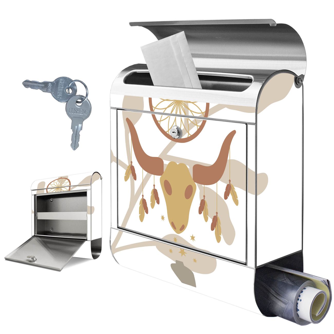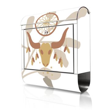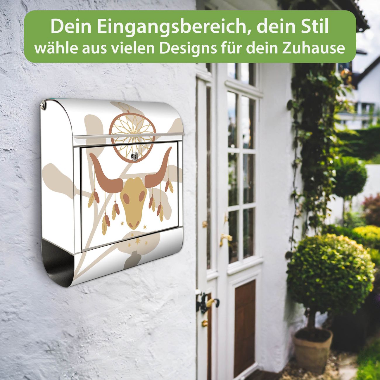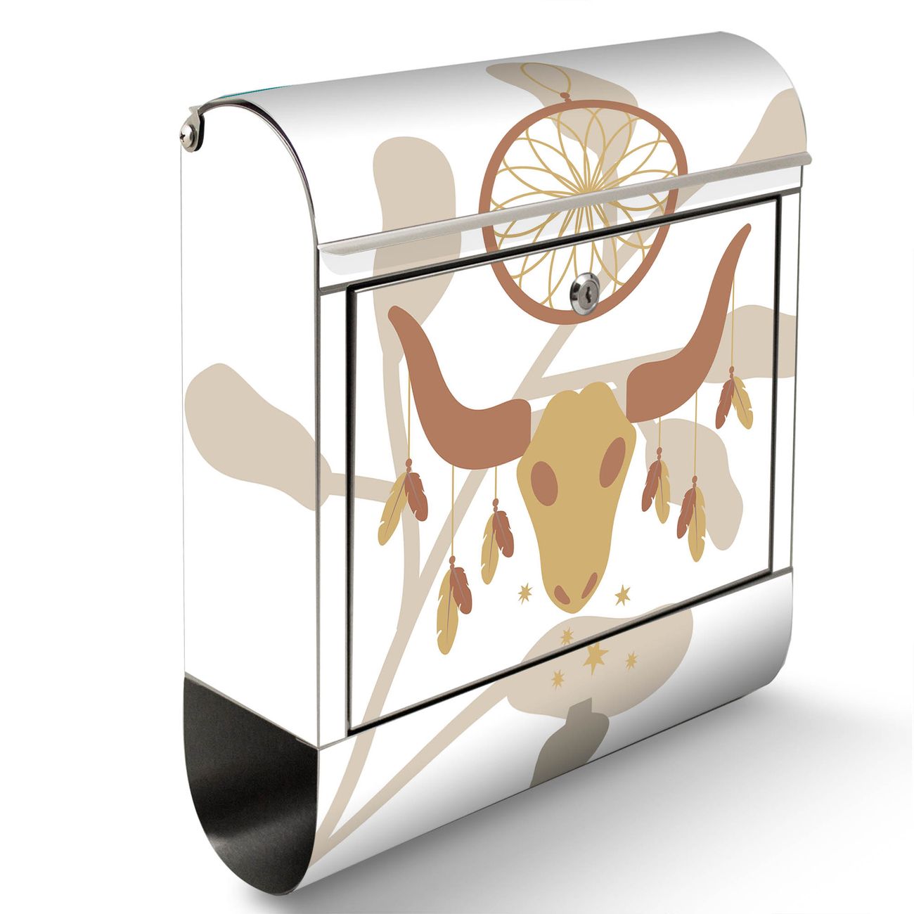 Wandbriefkasten Edelstahl Motiv Boho Traumfänger Schädel