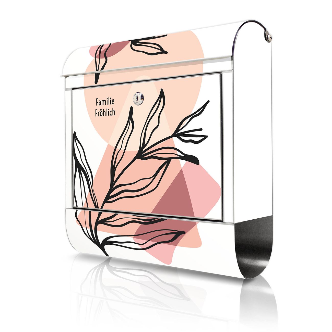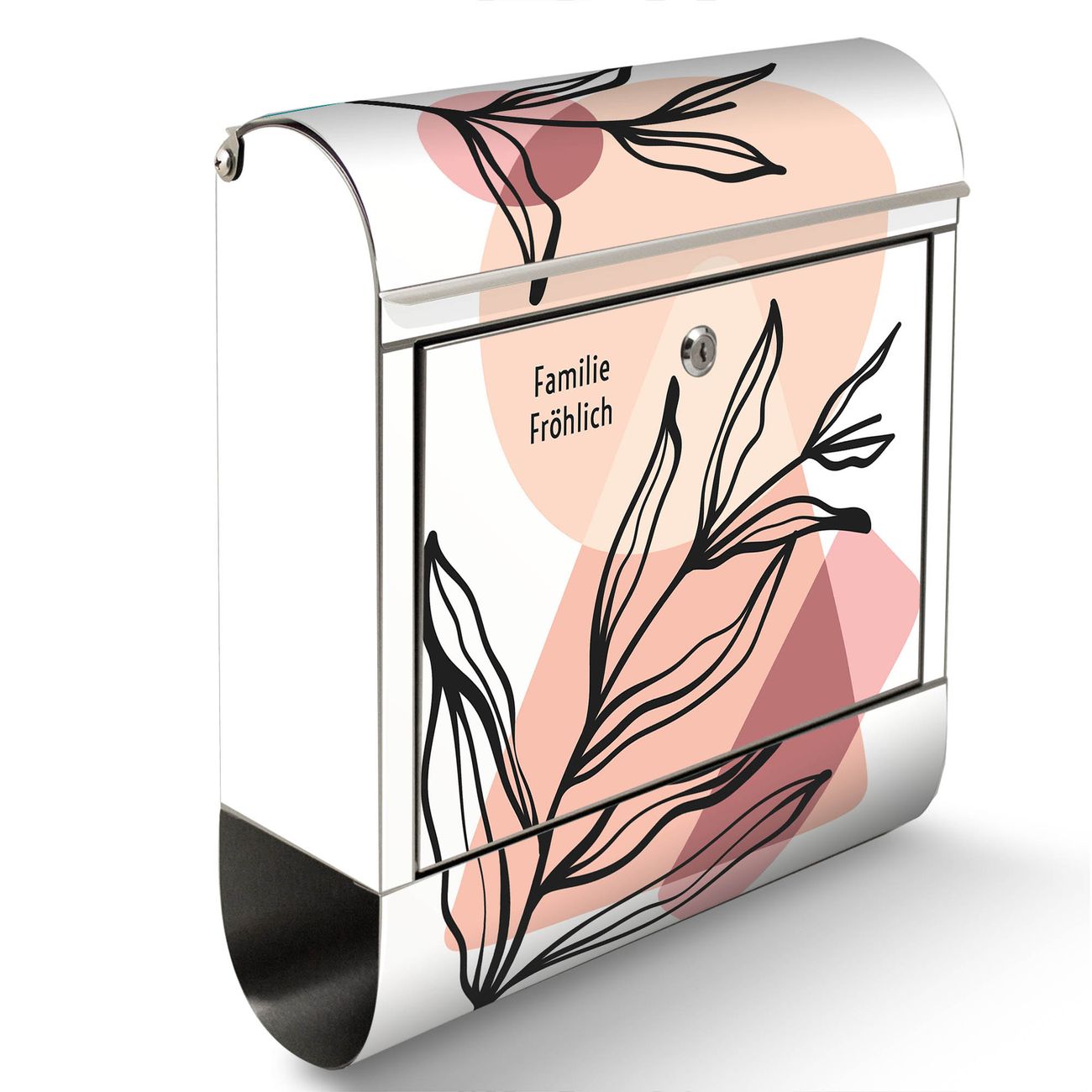 Wandbriefkasten Edelstahl Motiv Botanische Linienkunst 2
