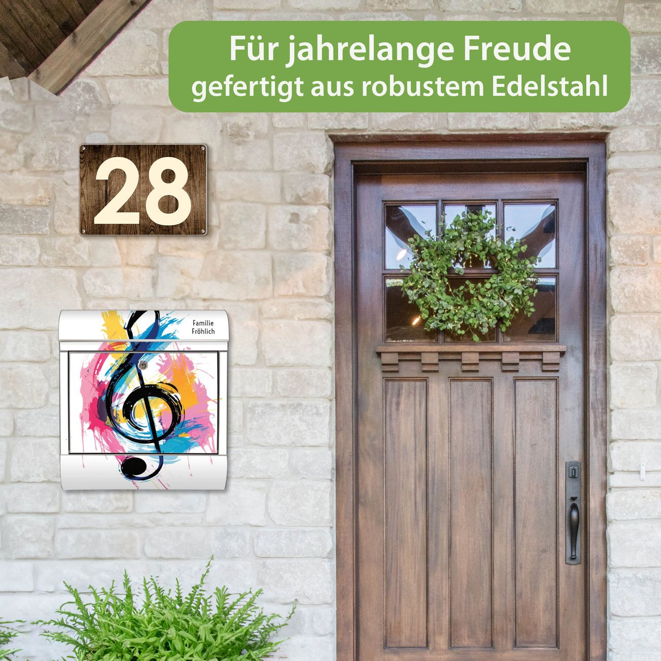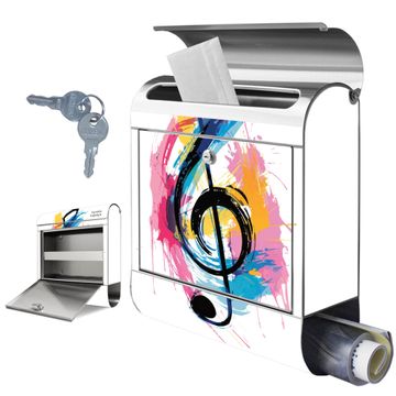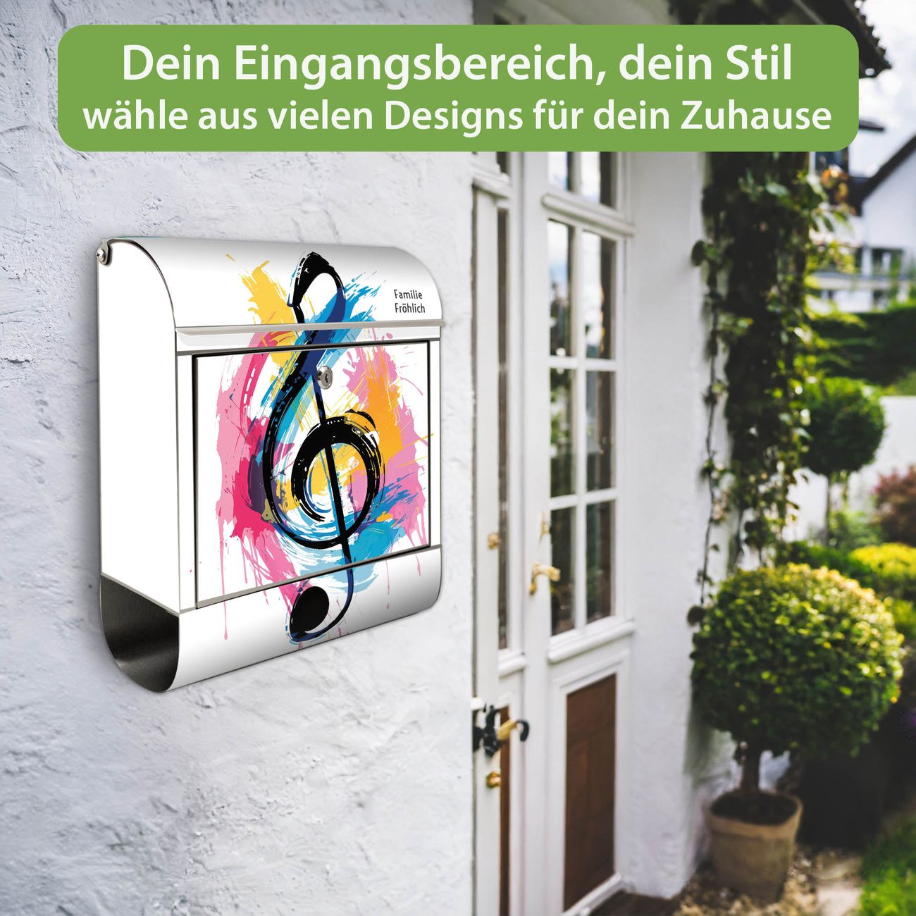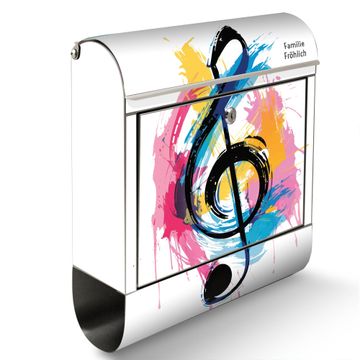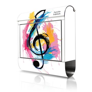 Wandbriefkasten Edelstahl Motiv Bunter Notenschlüssel