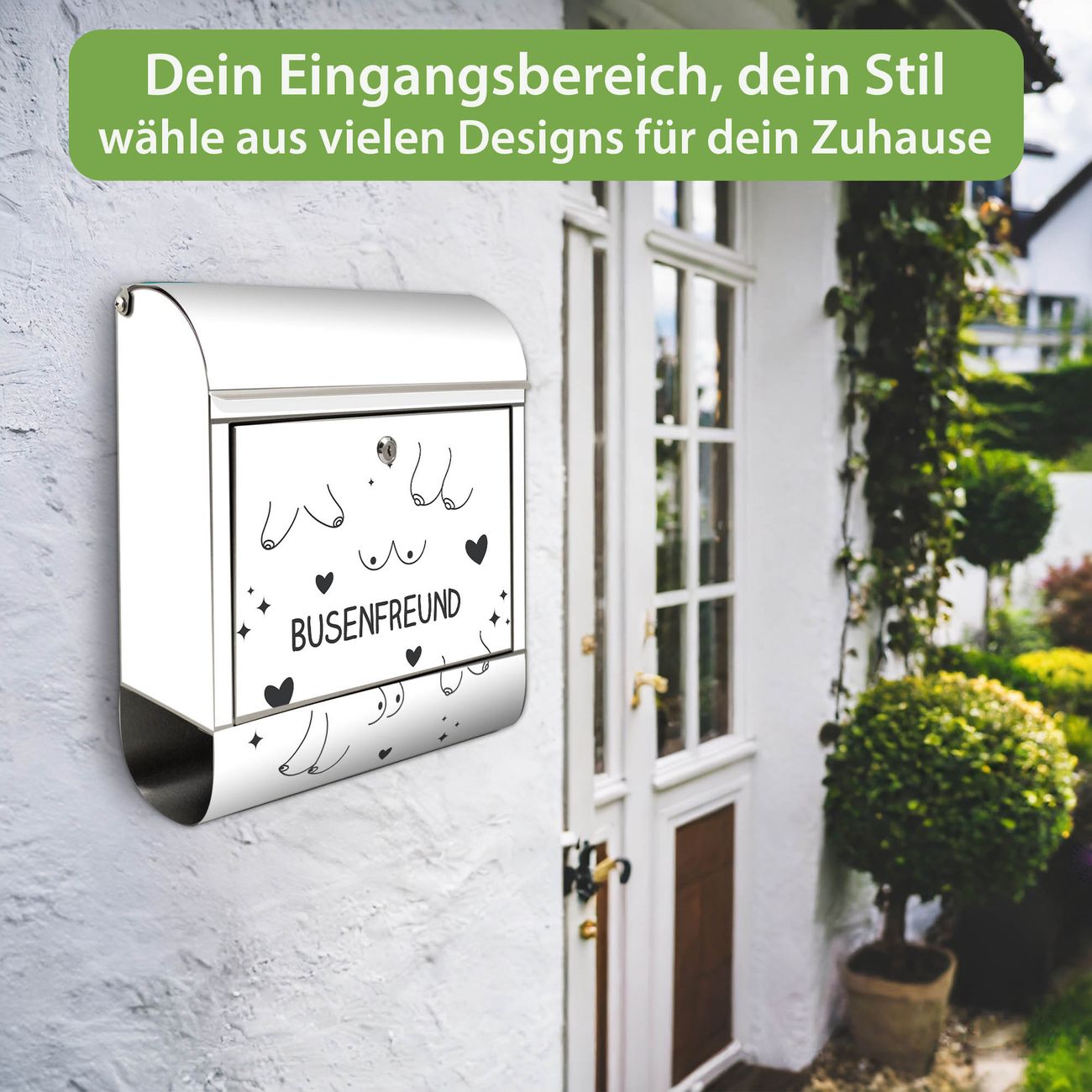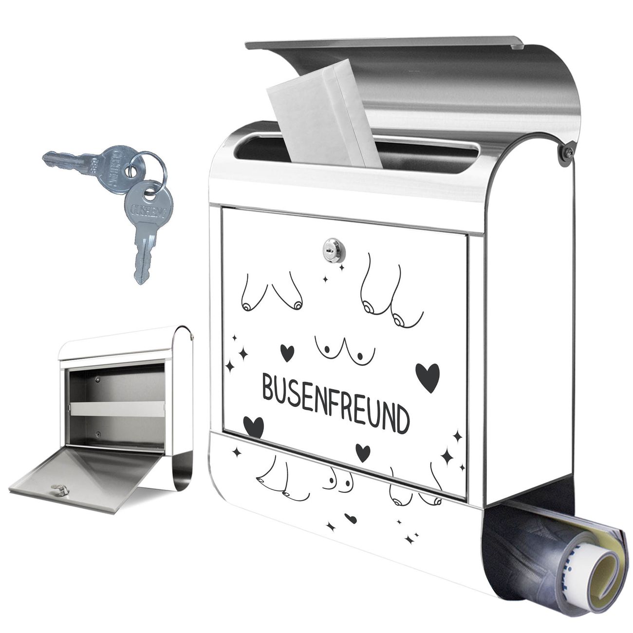 Wandbriefkasten Edelstahl Motiv Busenfreund 2