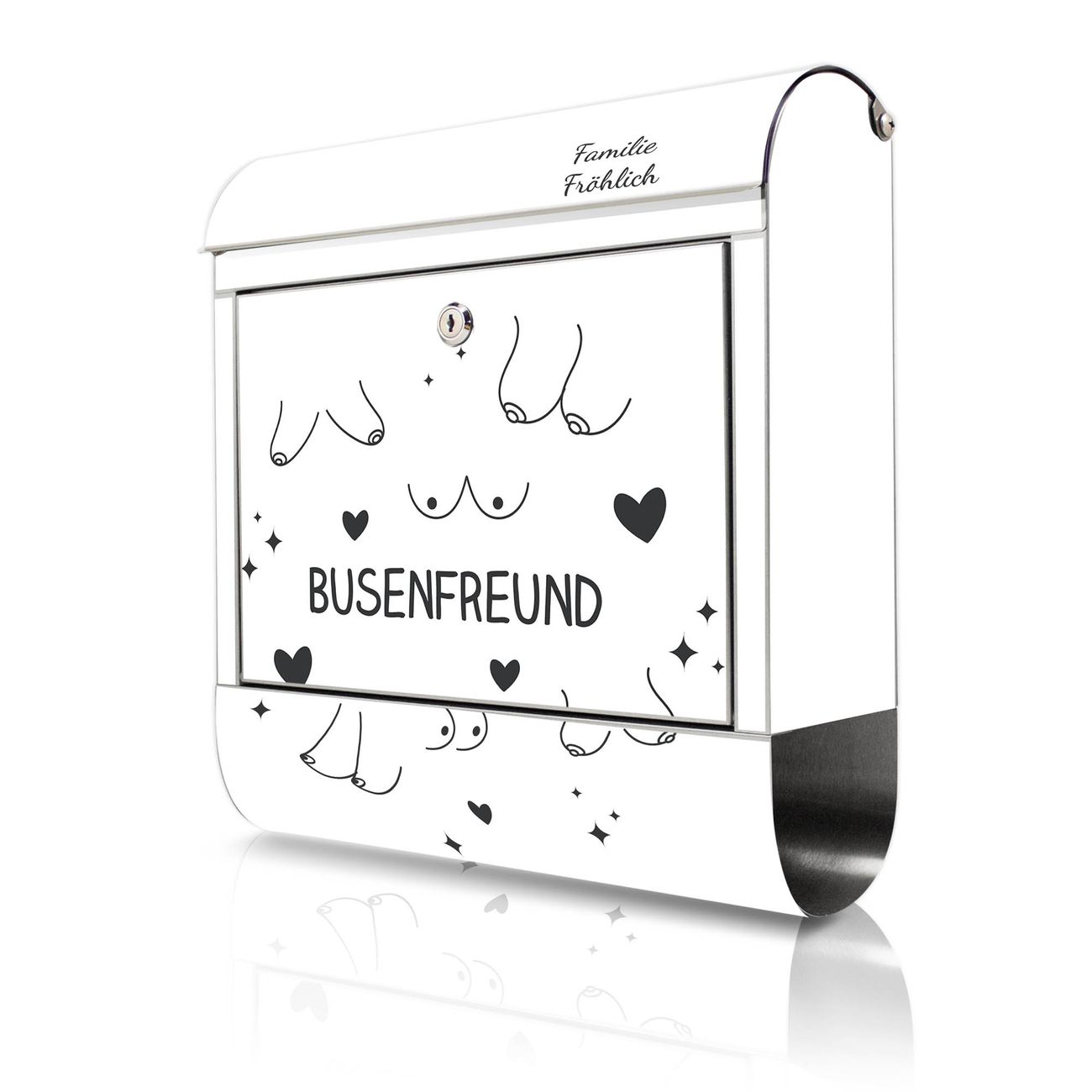Wandbriefkasten Edelstahl Motiv Busenfreund 2