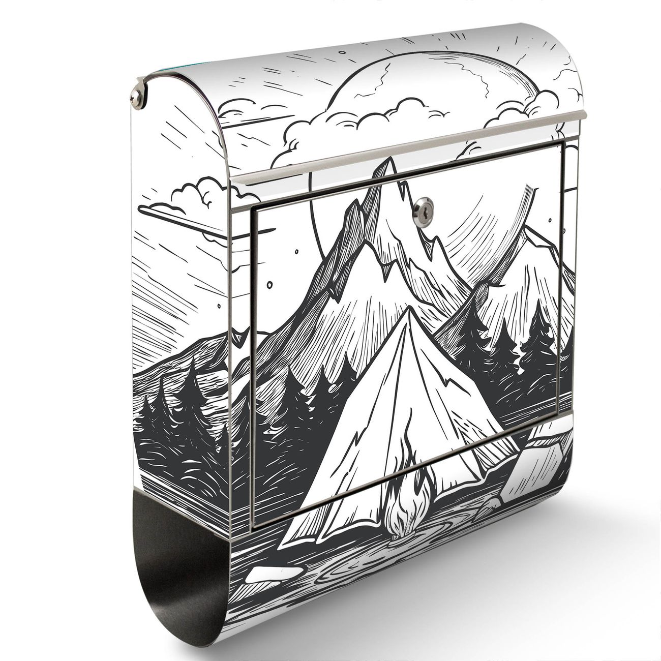 Wandbriefkasten Edelstahl Motiv Camping im Mondschein