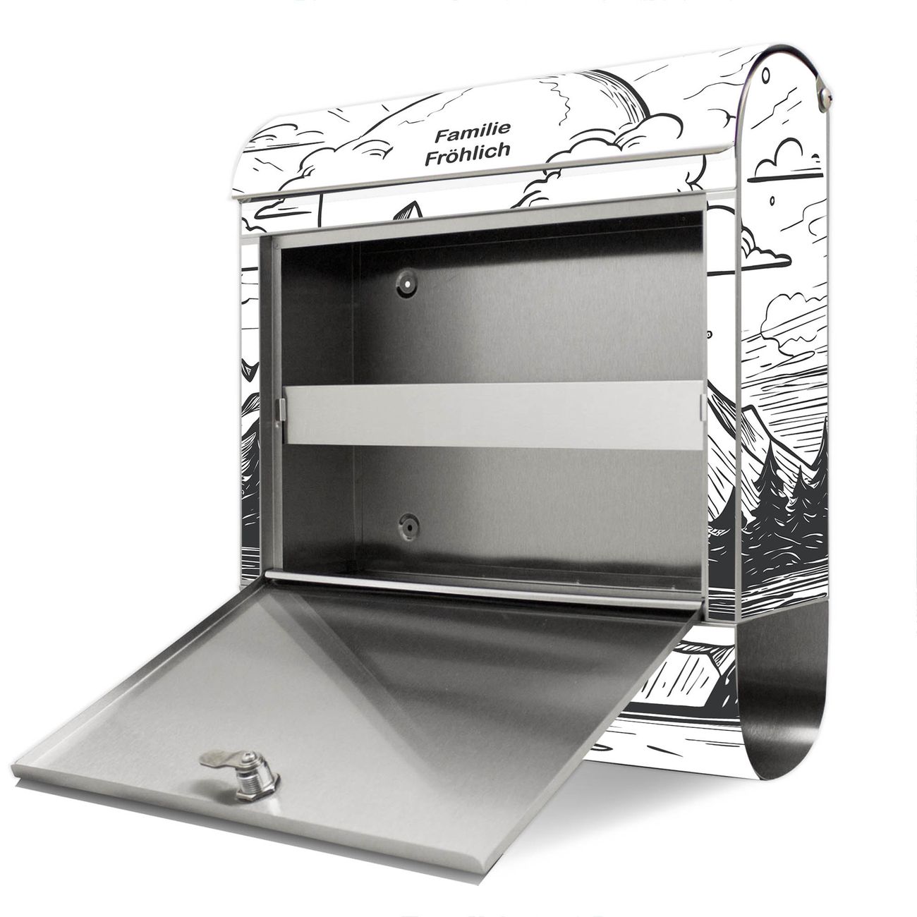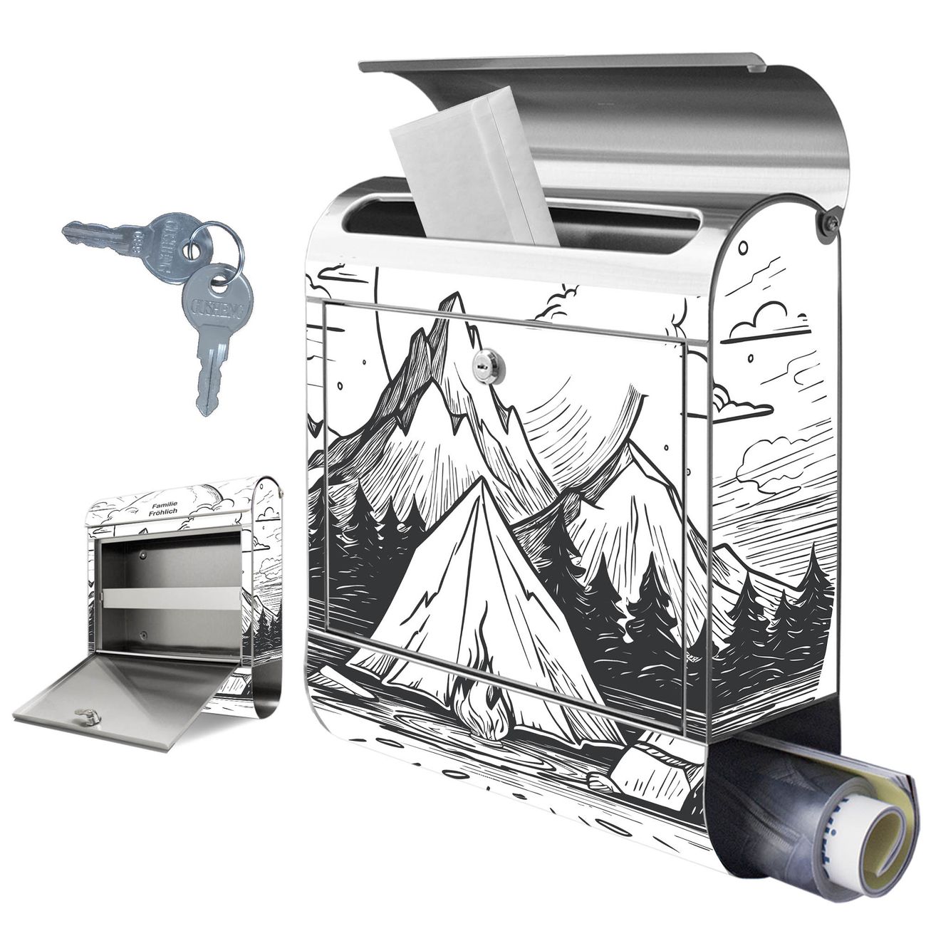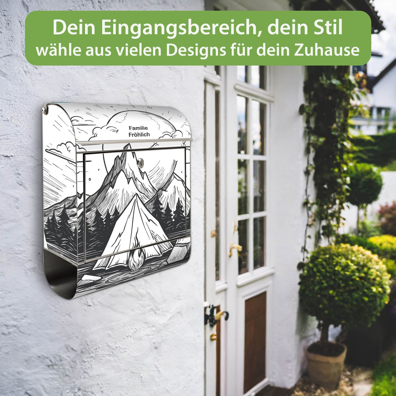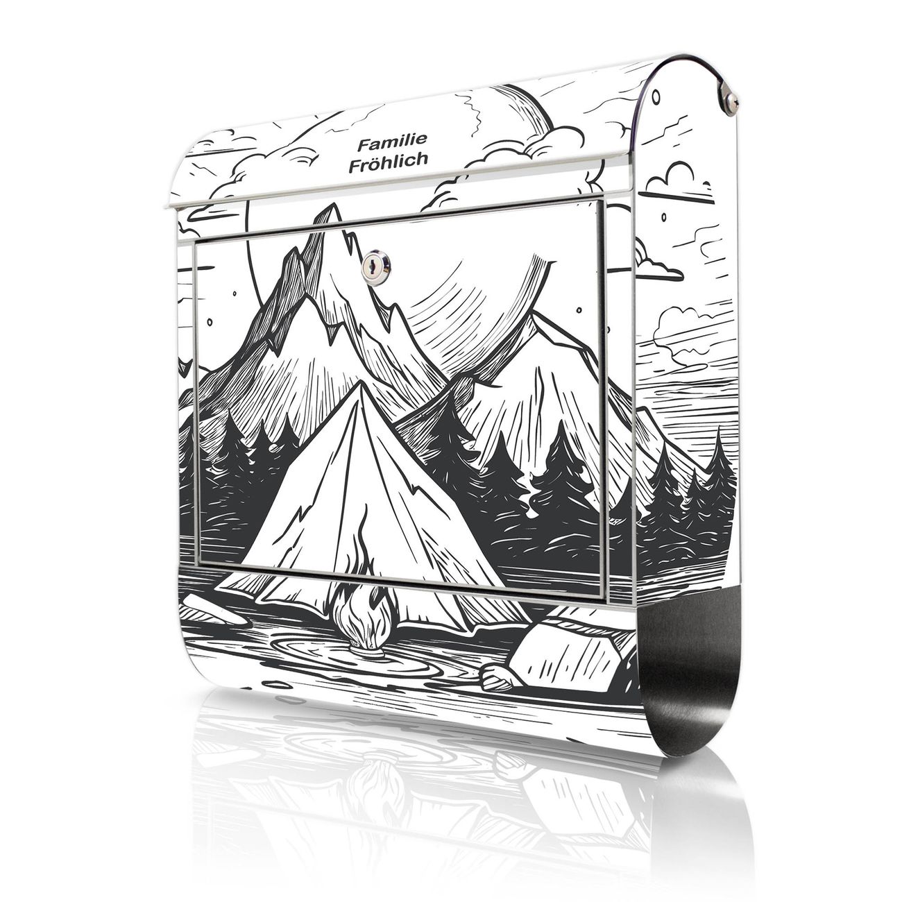 Wandbriefkasten Edelstahl Motiv Camping im Mondschein