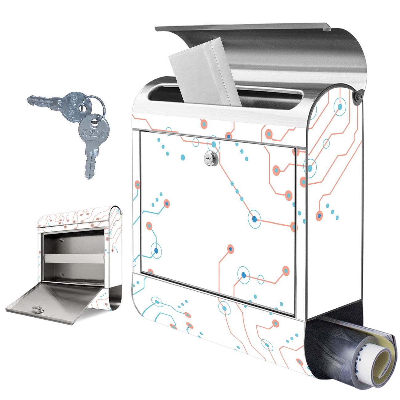Wandbriefkasten Edelstahl Motiv Digitales Schaltkreismuster