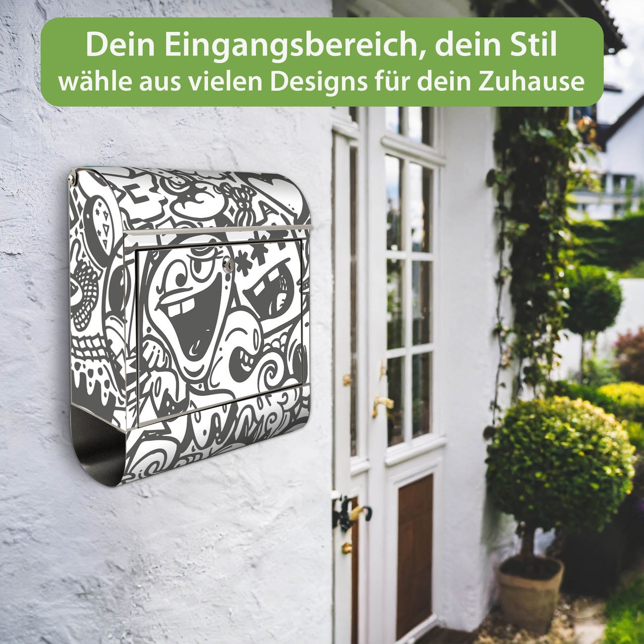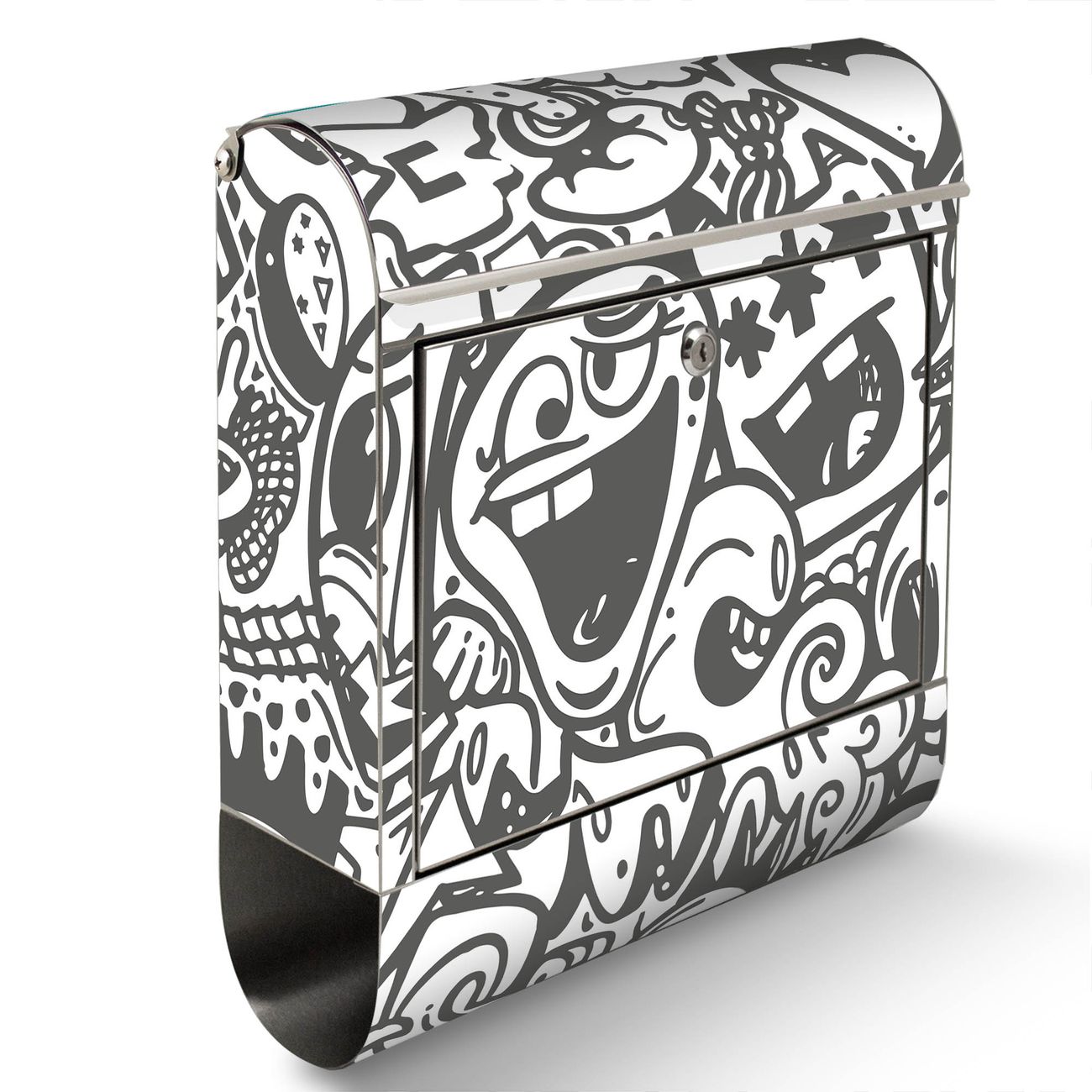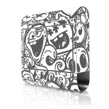 Wandbriefkasten Edelstahl Motiv Doodle Verrückt
