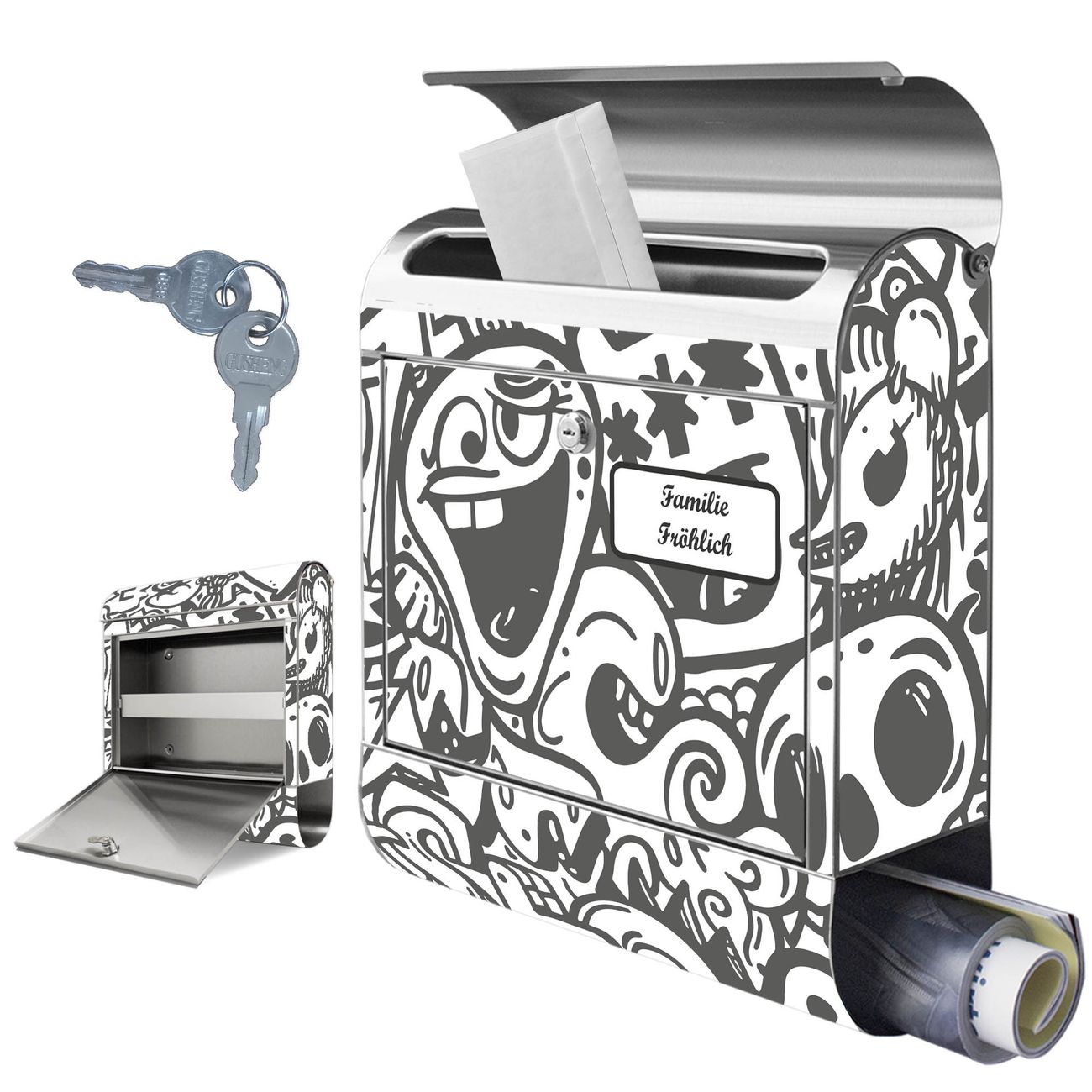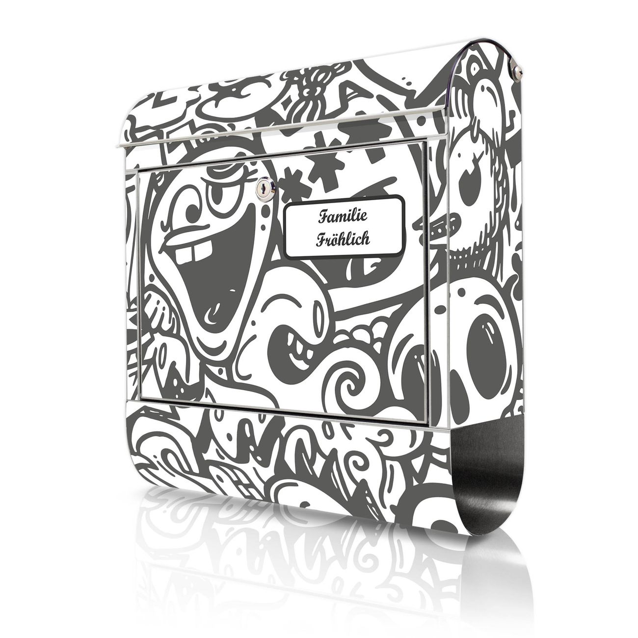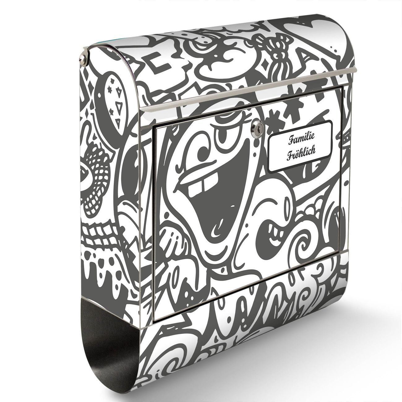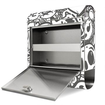 Wandbriefkasten Edelstahl Motiv Doodle Verrückt