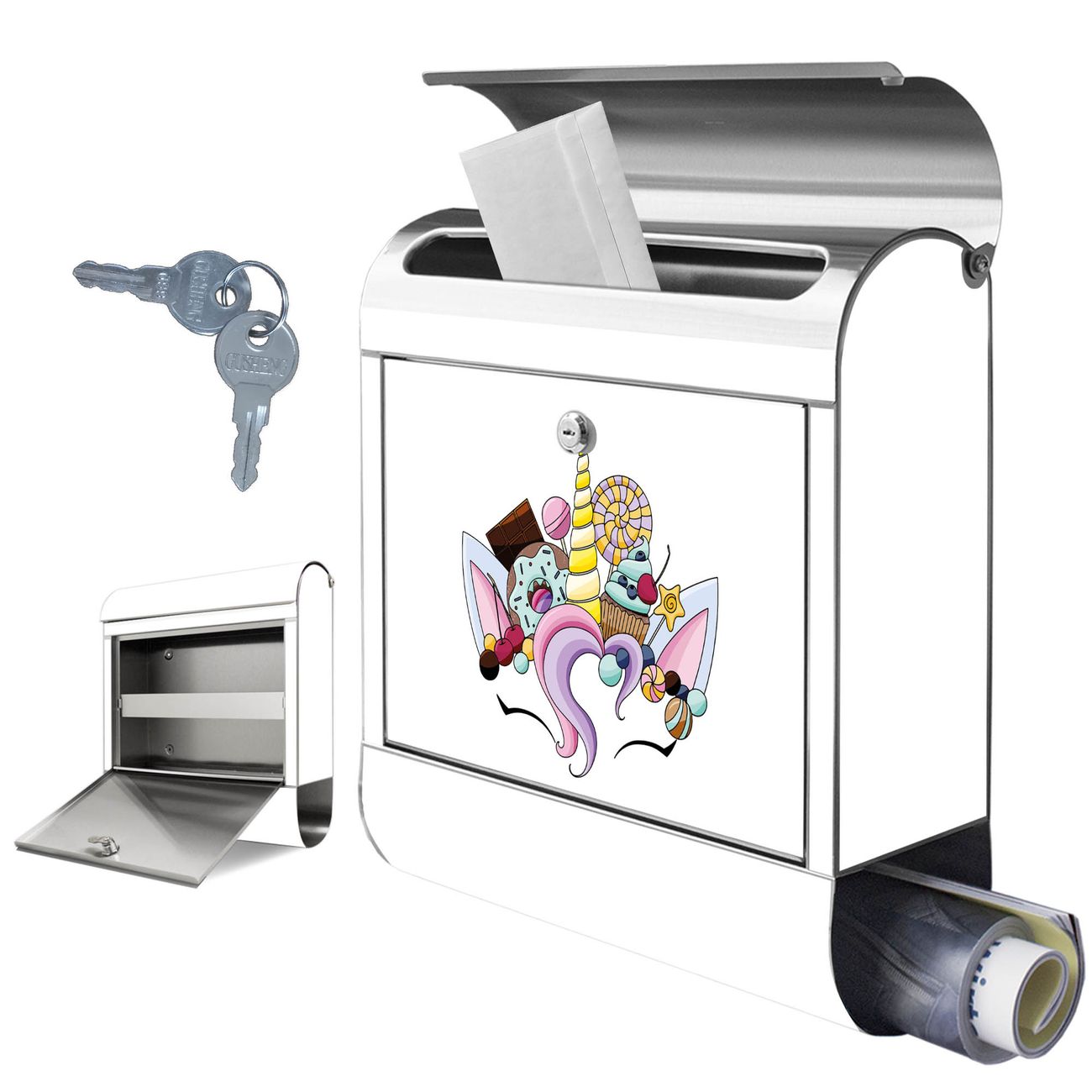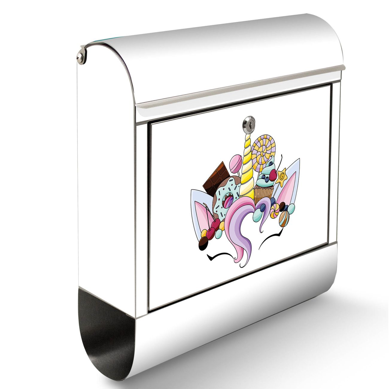 Wandbriefkasten Edelstahl Motiv Einhorn Maske