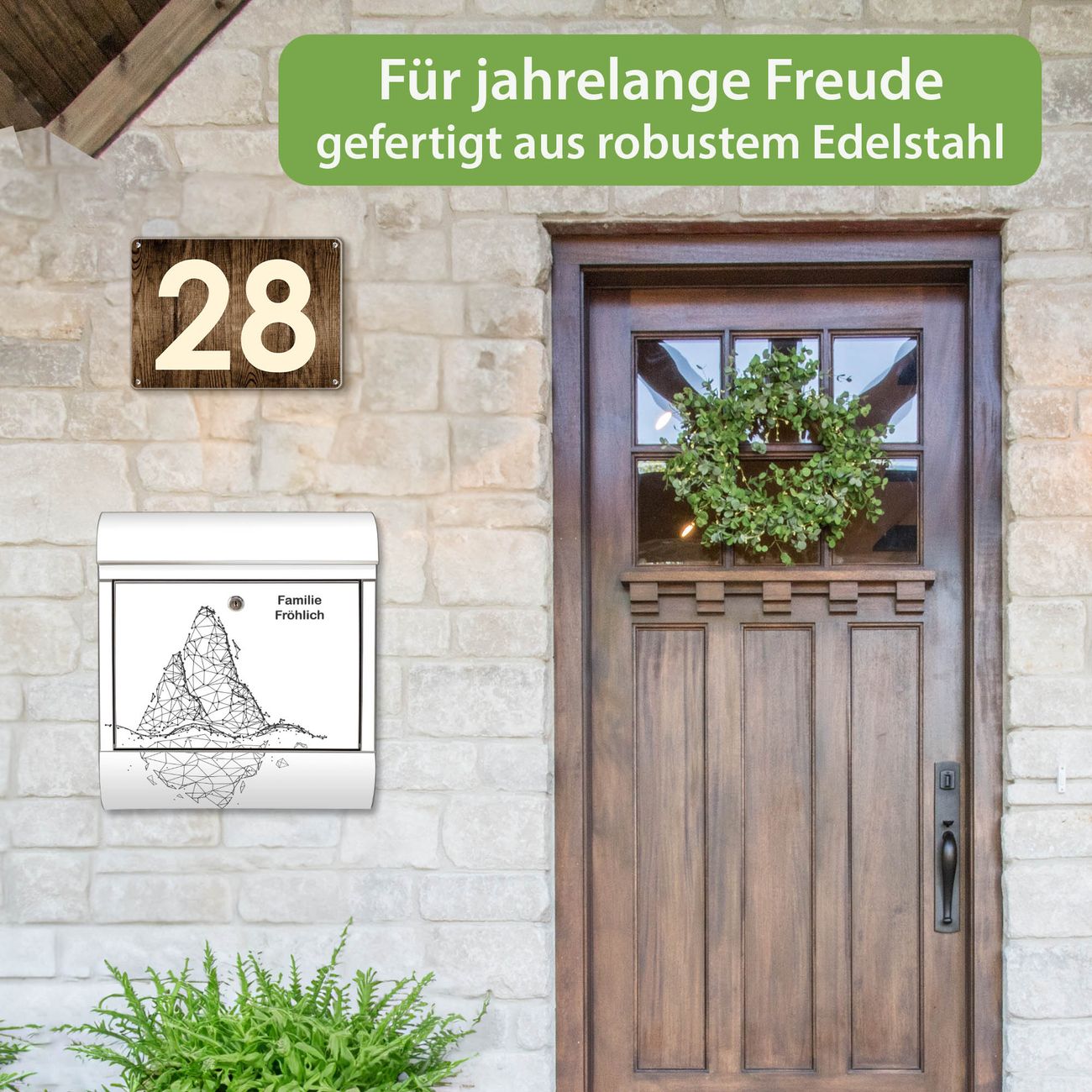 Der Vorschau-Text Familie Fröhlich wird durch Ihren persönlichen Wunschtext ersetzt. Die Schriftart und Farbe bleiben gleich wie in der Vorschau.