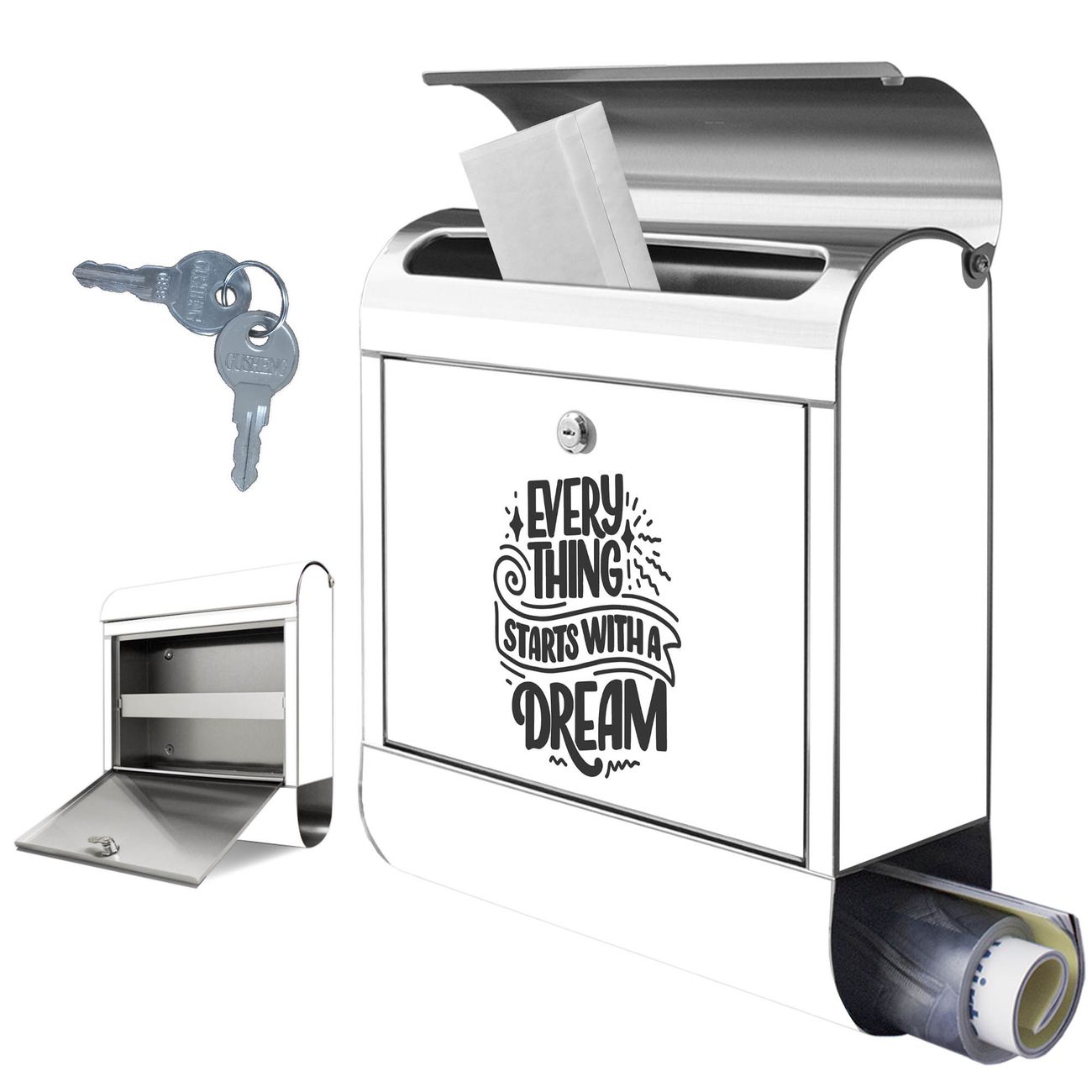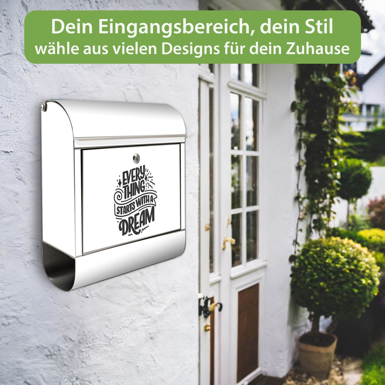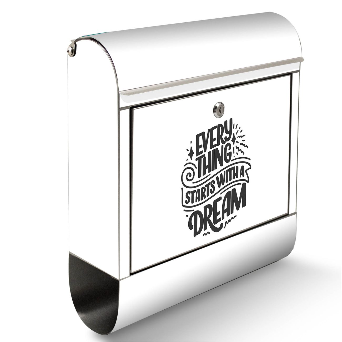 Wandbriefkasten Edelstahl Motiv Everything starts with a Dream 2