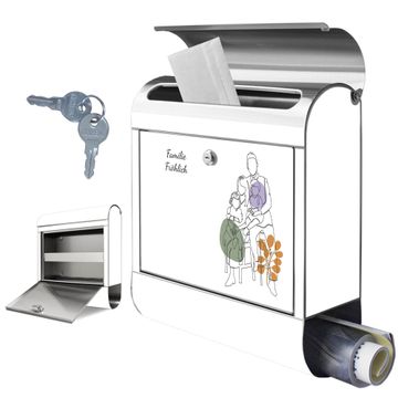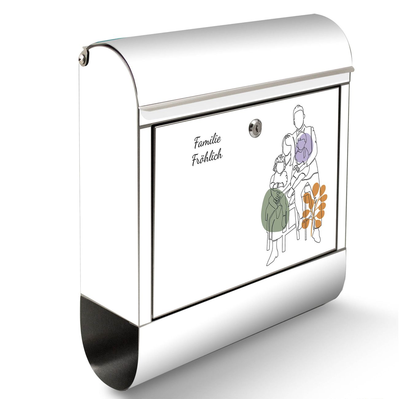 Wandbriefkasten Edelstahl Motiv Familienglück Lineart