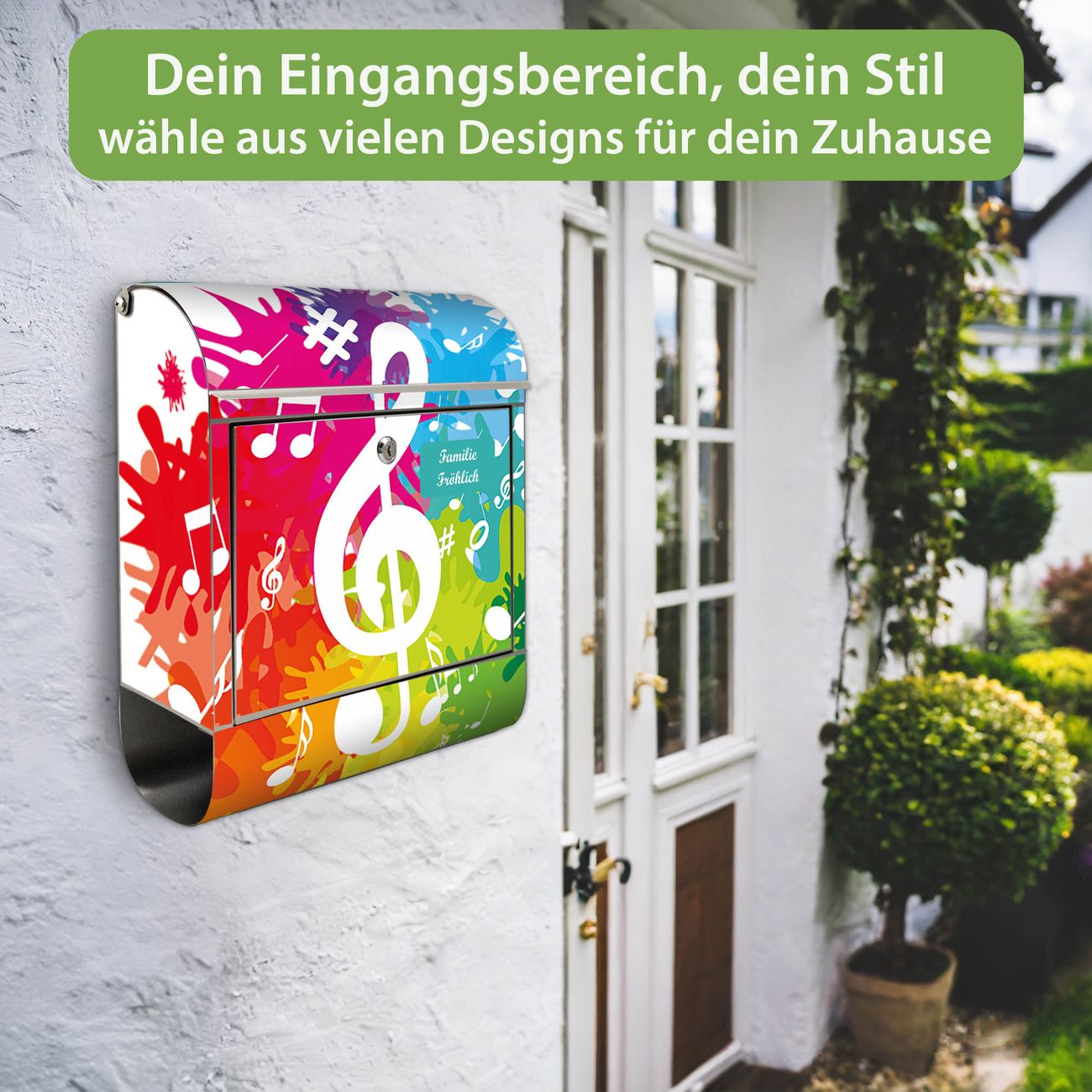 Wandbriefkasten Edelstahl Motiv Farbensymphonie
