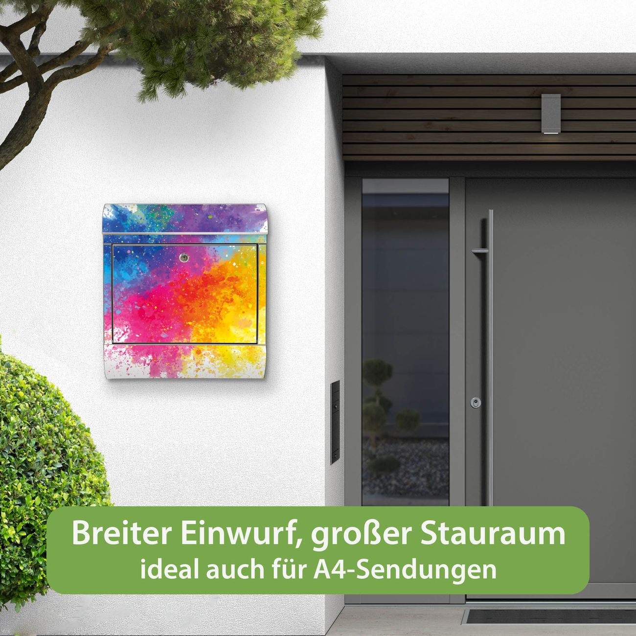 Wandbriefkasten Edelstahl Motiv Farbexplosion 2