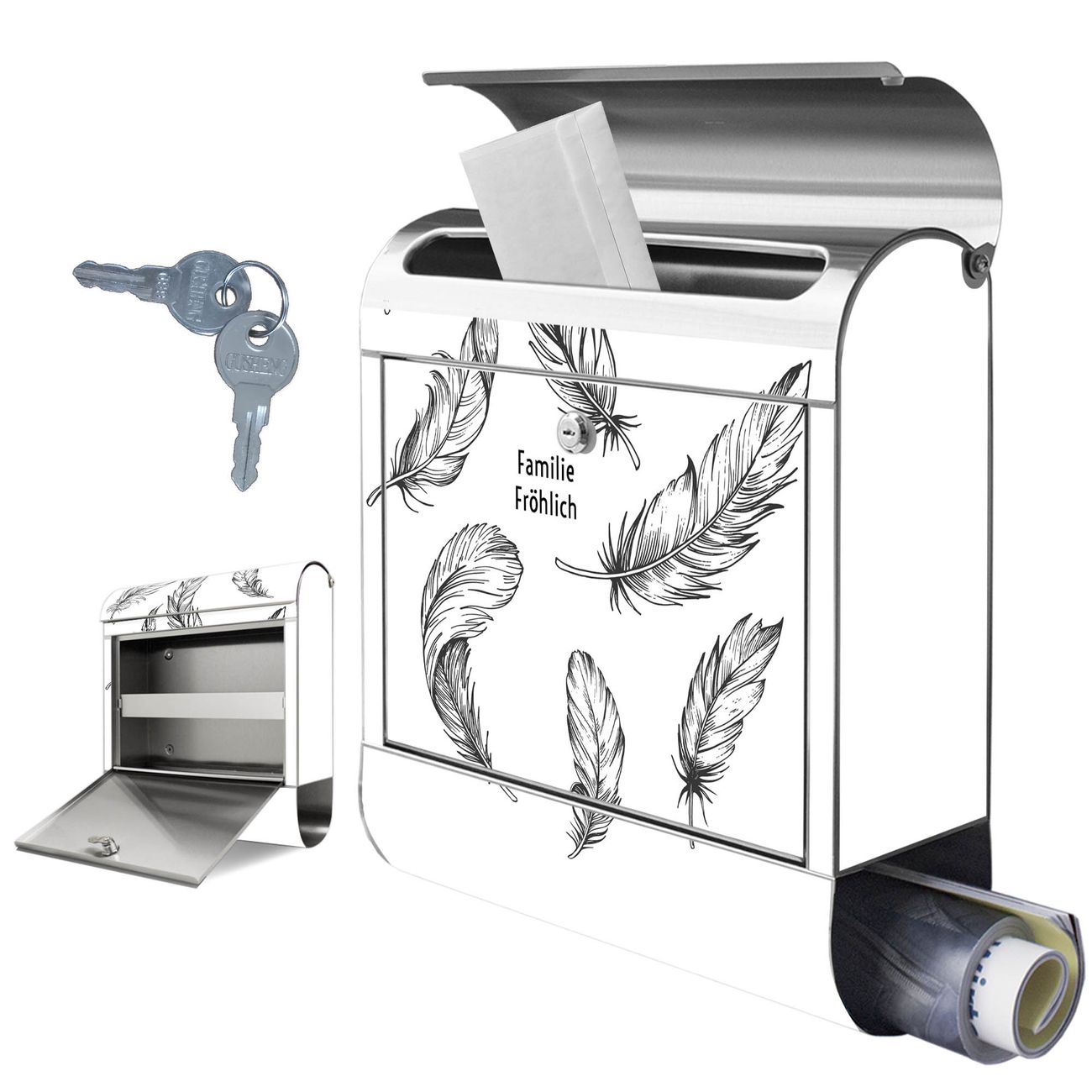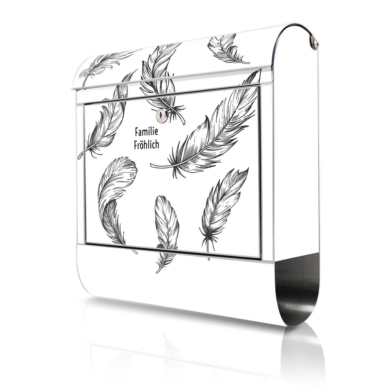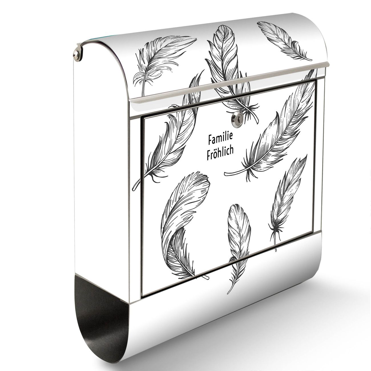 Wandbriefkasten Edelstahl Motiv Federn 2