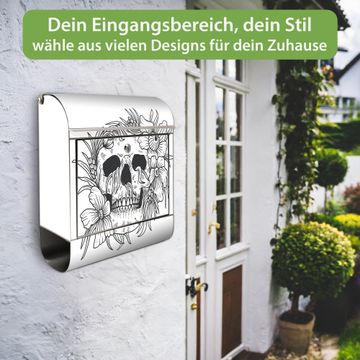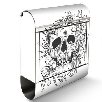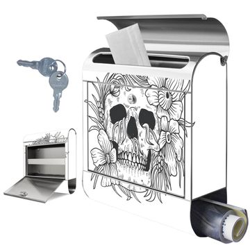 Wandbriefkasten Edelstahl Motiv Floral Skull 2