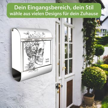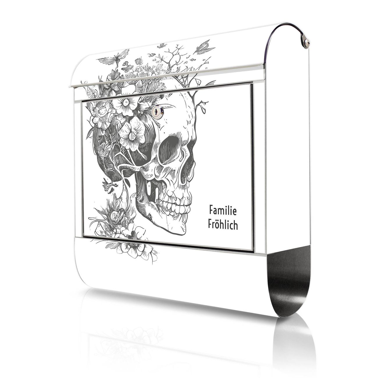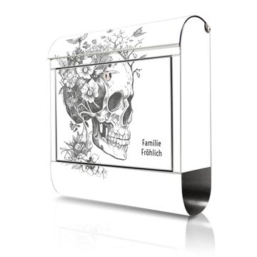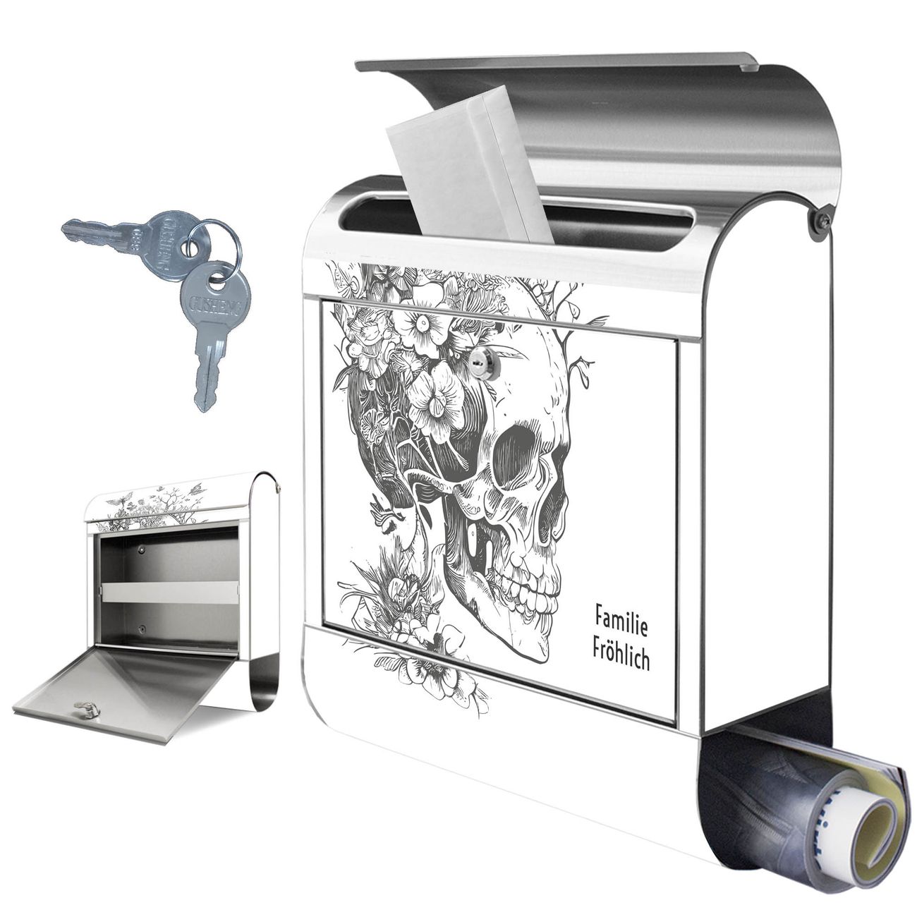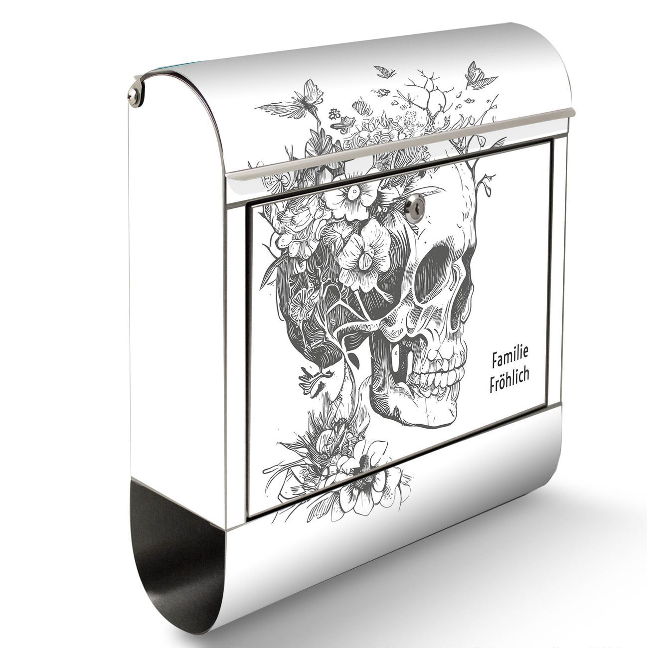 Wandbriefkasten Edelstahl Motiv Floral Skull