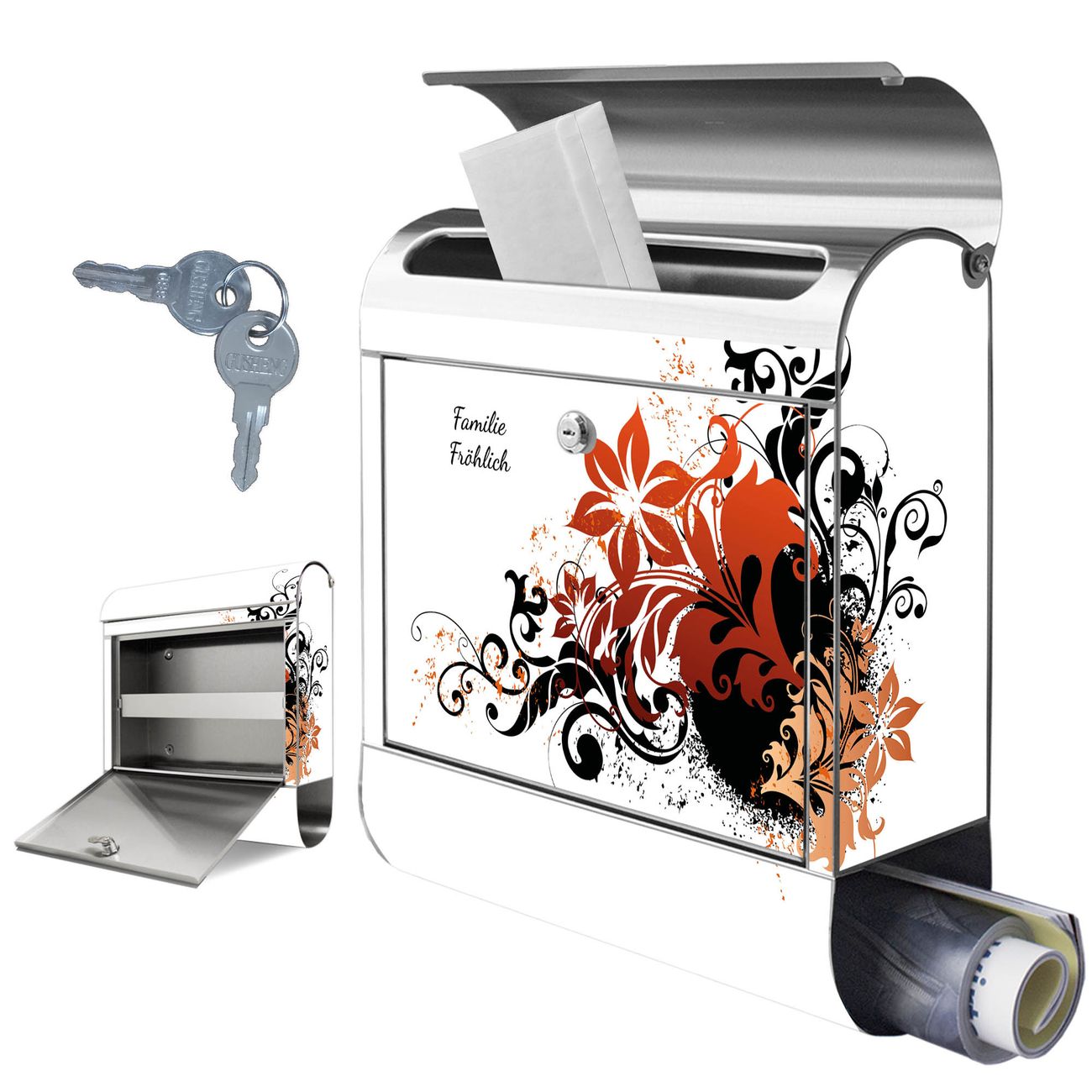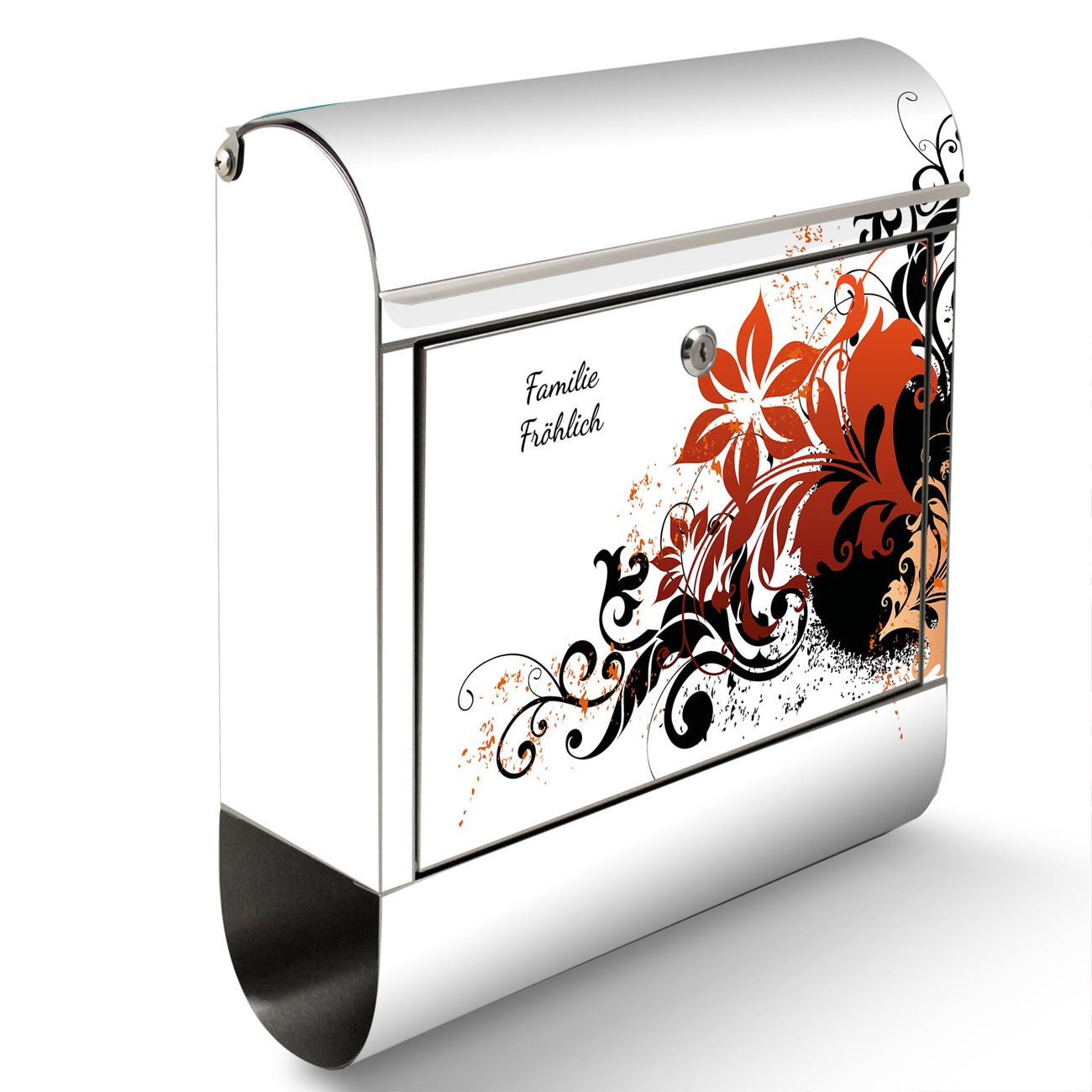 Wandbriefkasten Edelstahl Motiv Florales Ornament 2