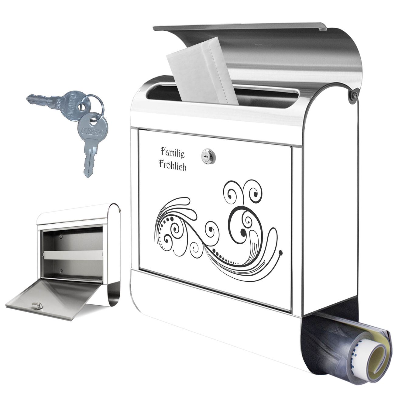 Wandbriefkasten Edelstahl Motiv Florales Ornament
