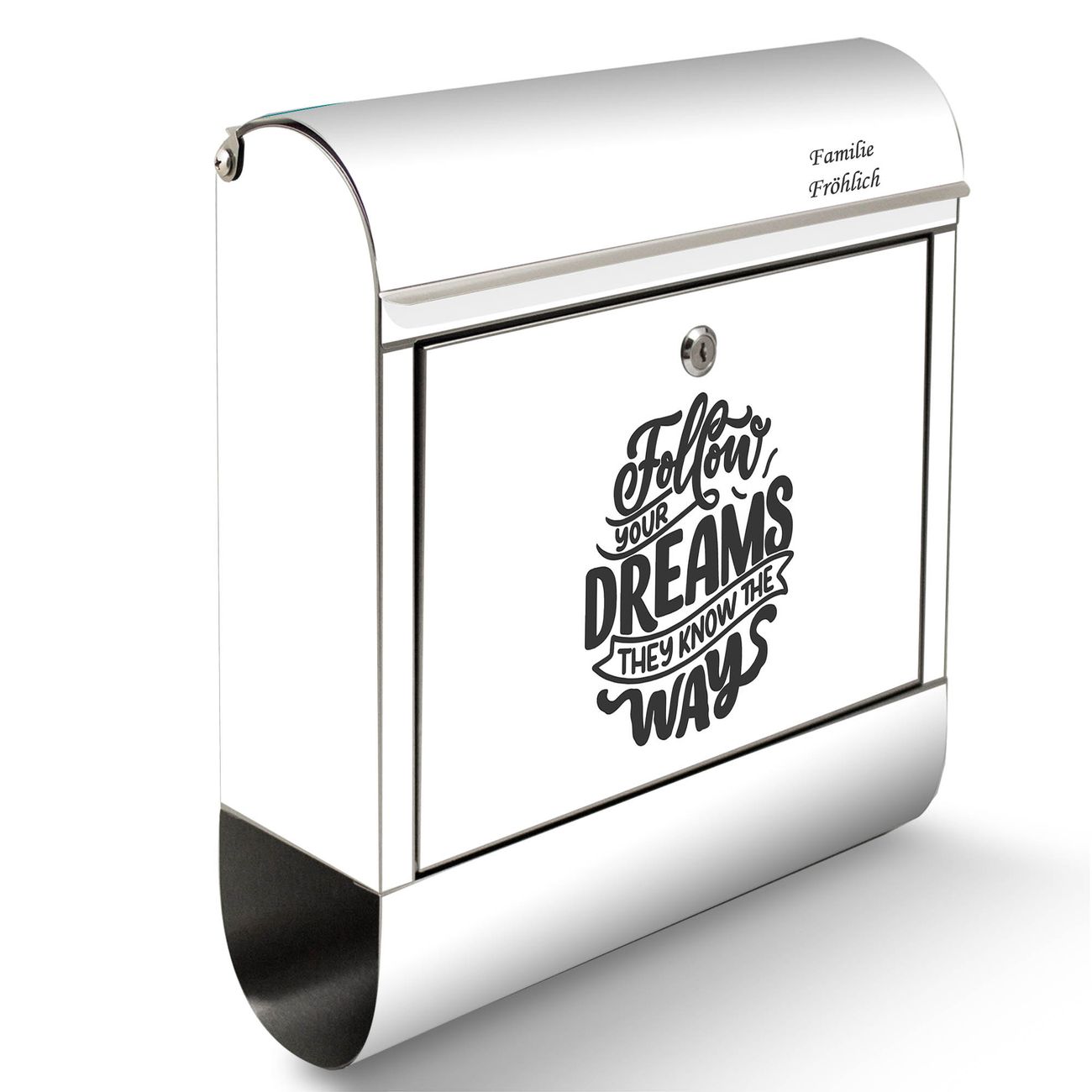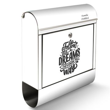 Wandbriefkasten Edelstahl Motiv Follow your Dreams 2