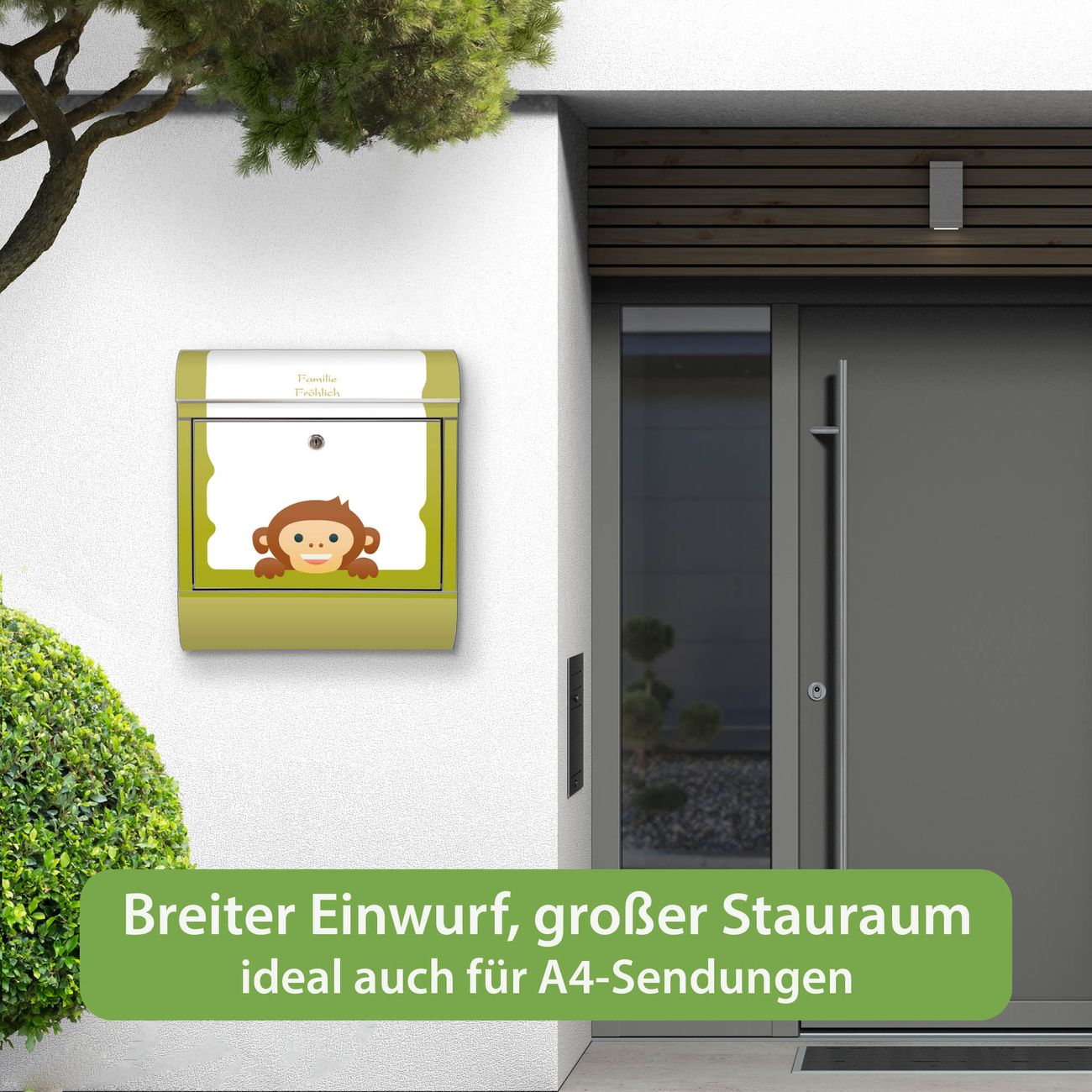 Wandbriefkasten Edelstahl Motiv Fröhlicher Affe