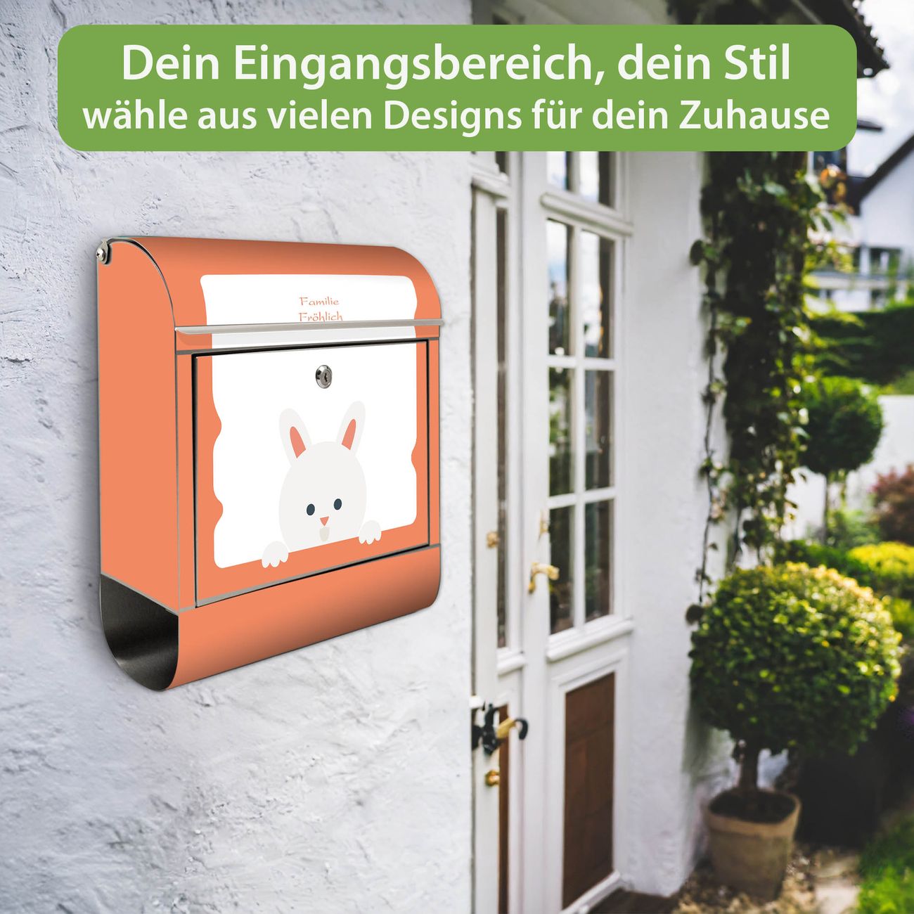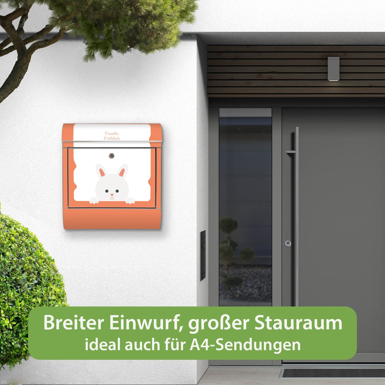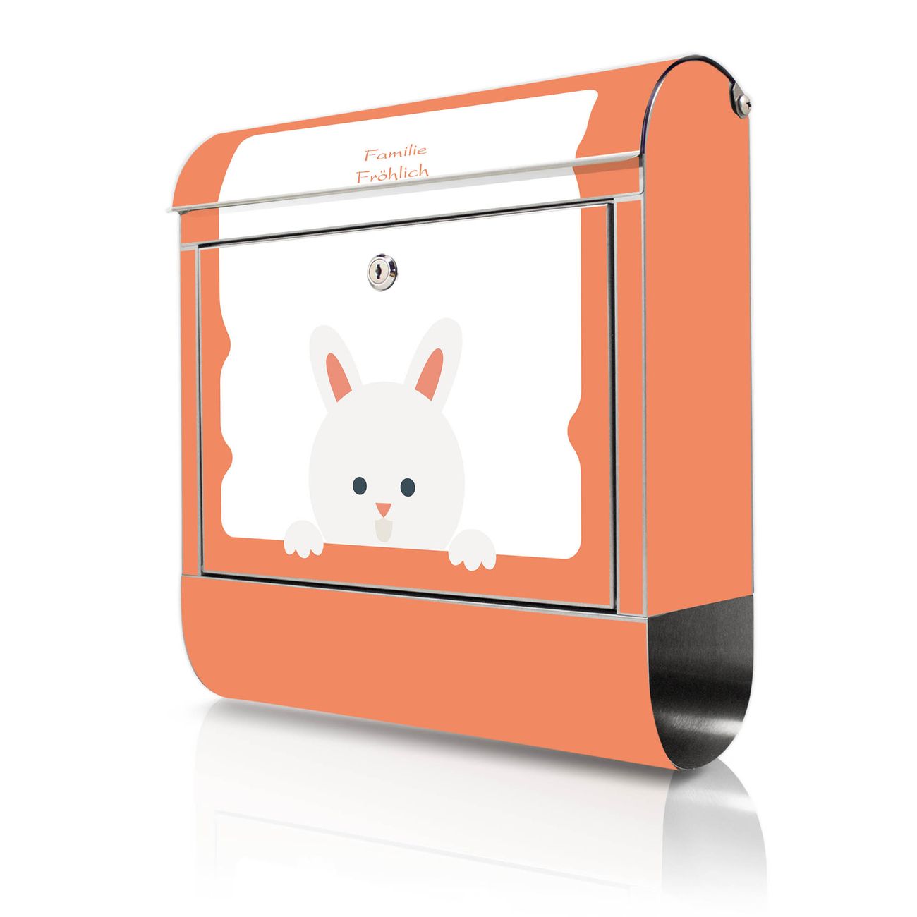 Wandbriefkasten Edelstahl Motiv Fröhlicher Hase