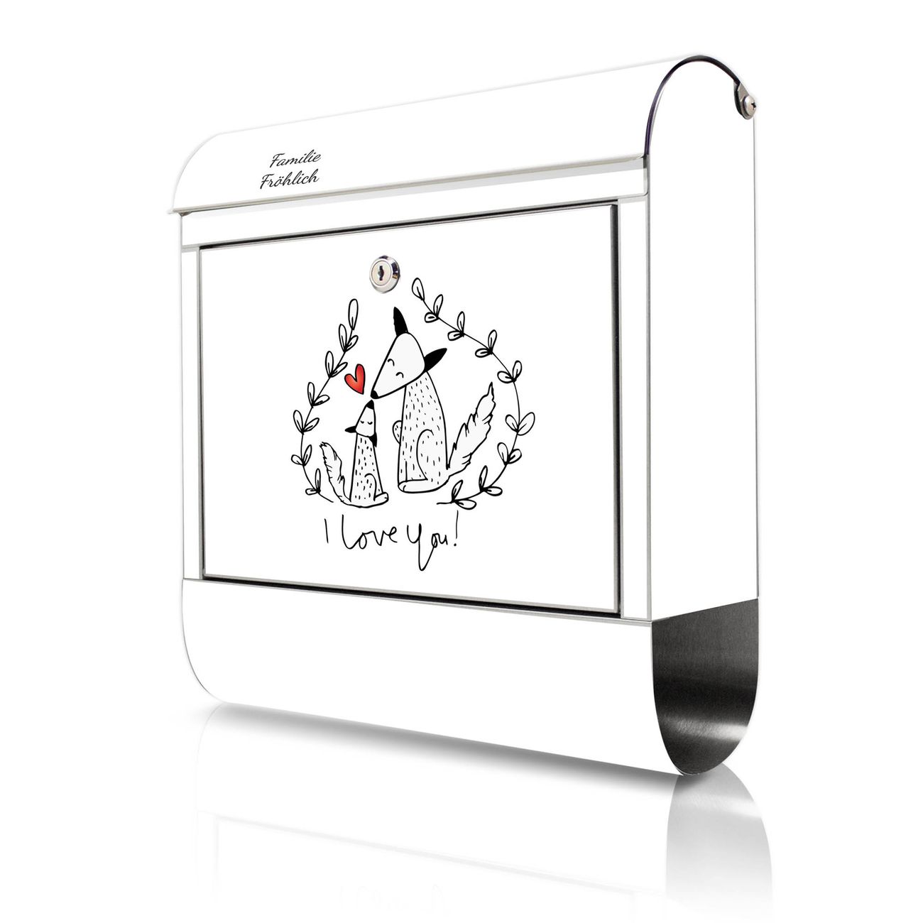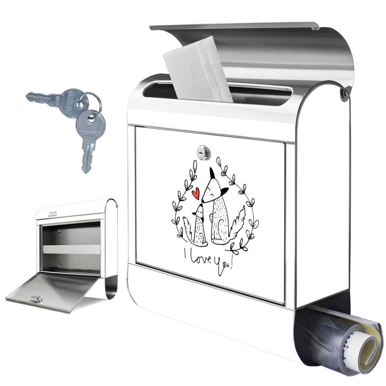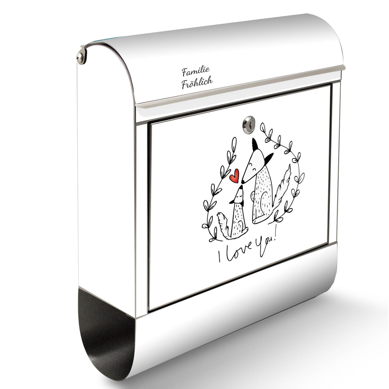 Wandbriefkasten Edelstahl Motiv Fuchsliebe