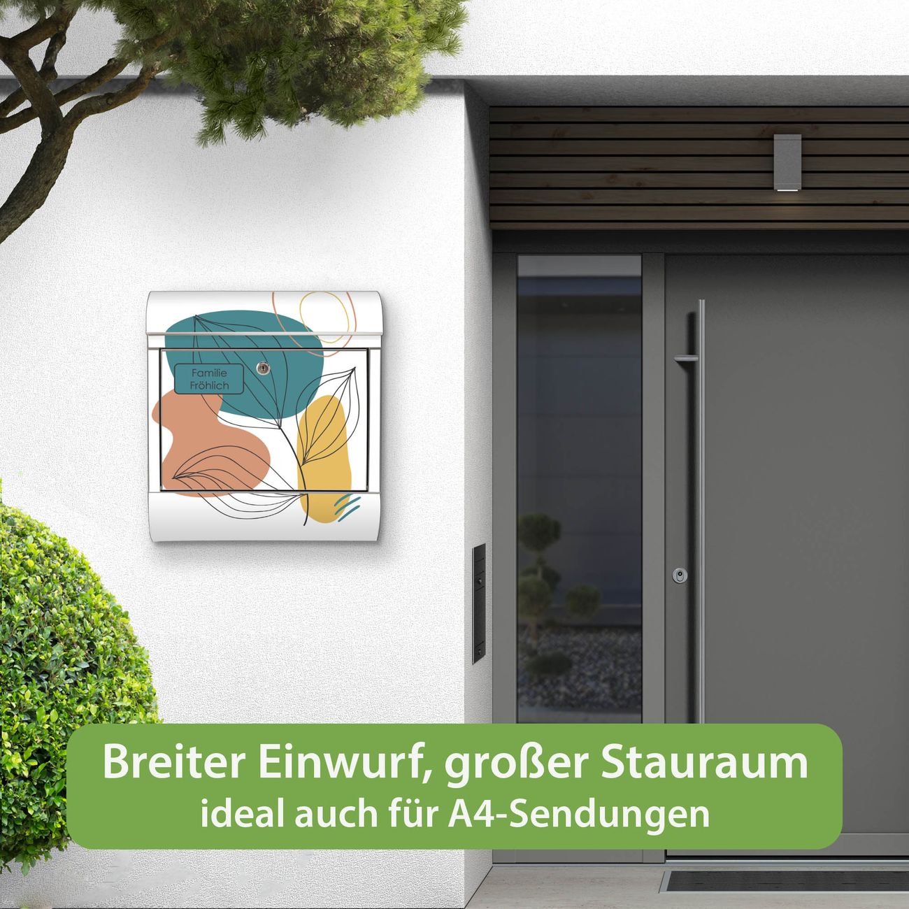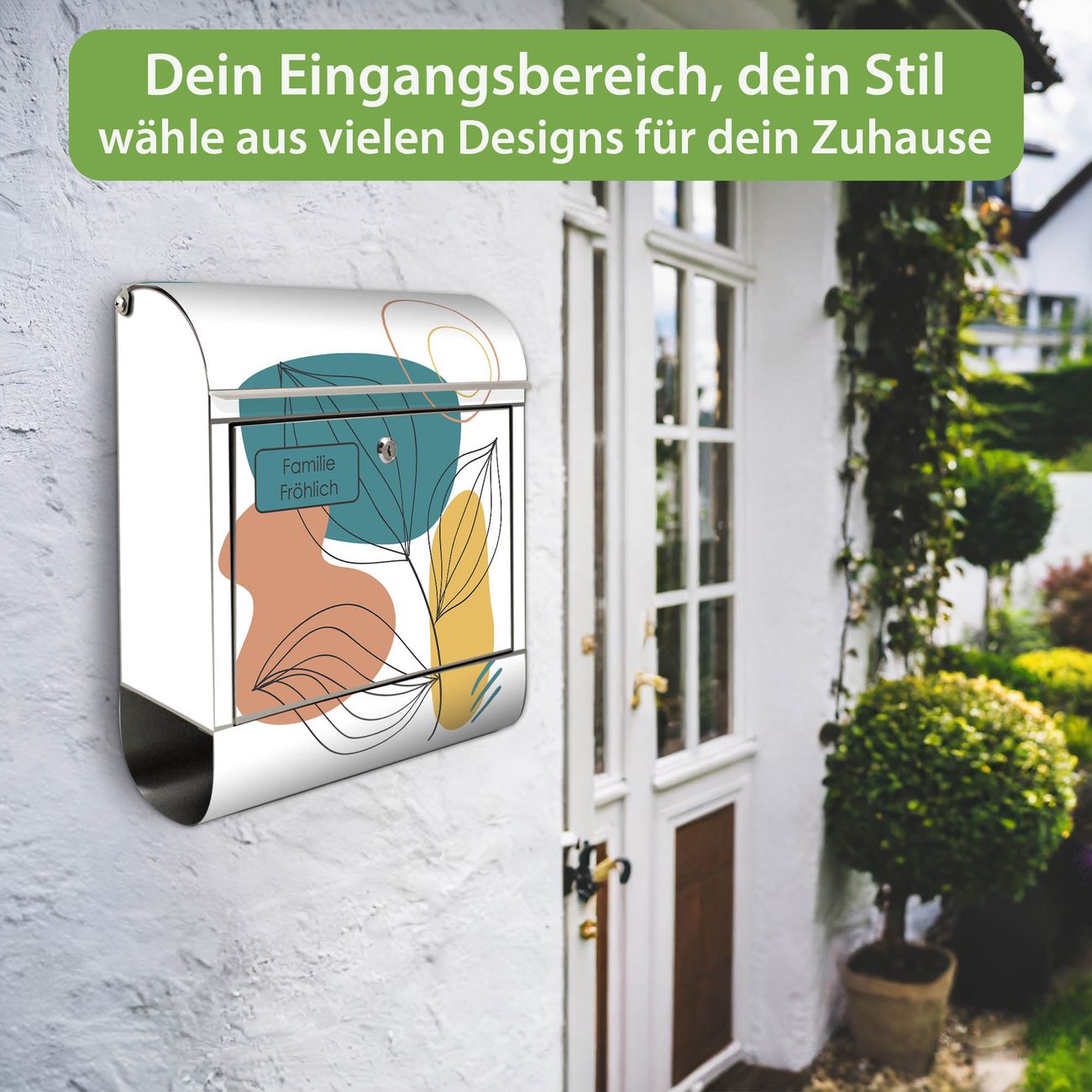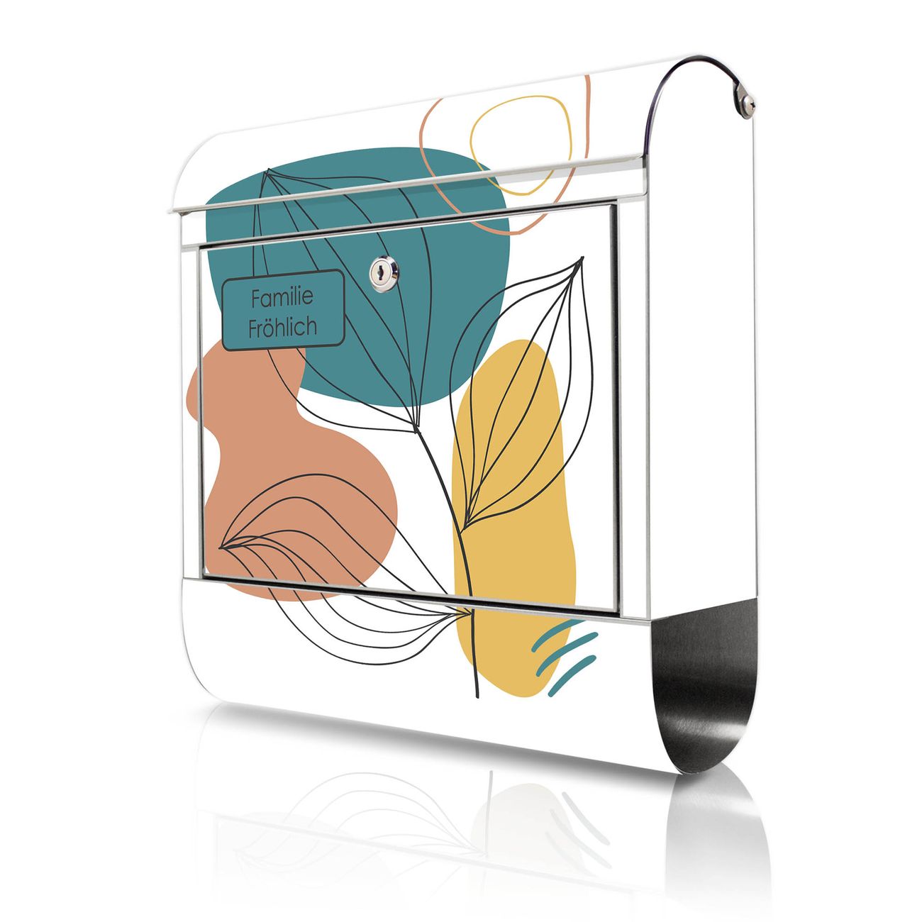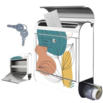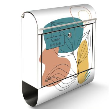 Wandbriefkasten Edelstahl Motiv Geometrische Blätter Lineart