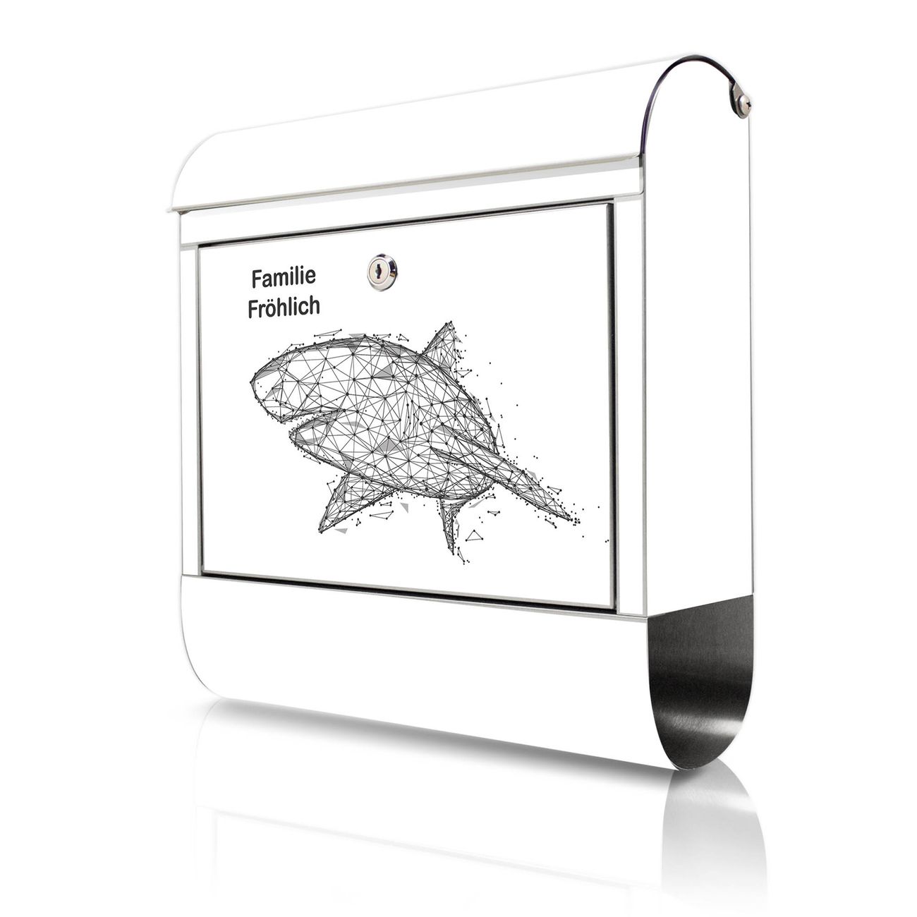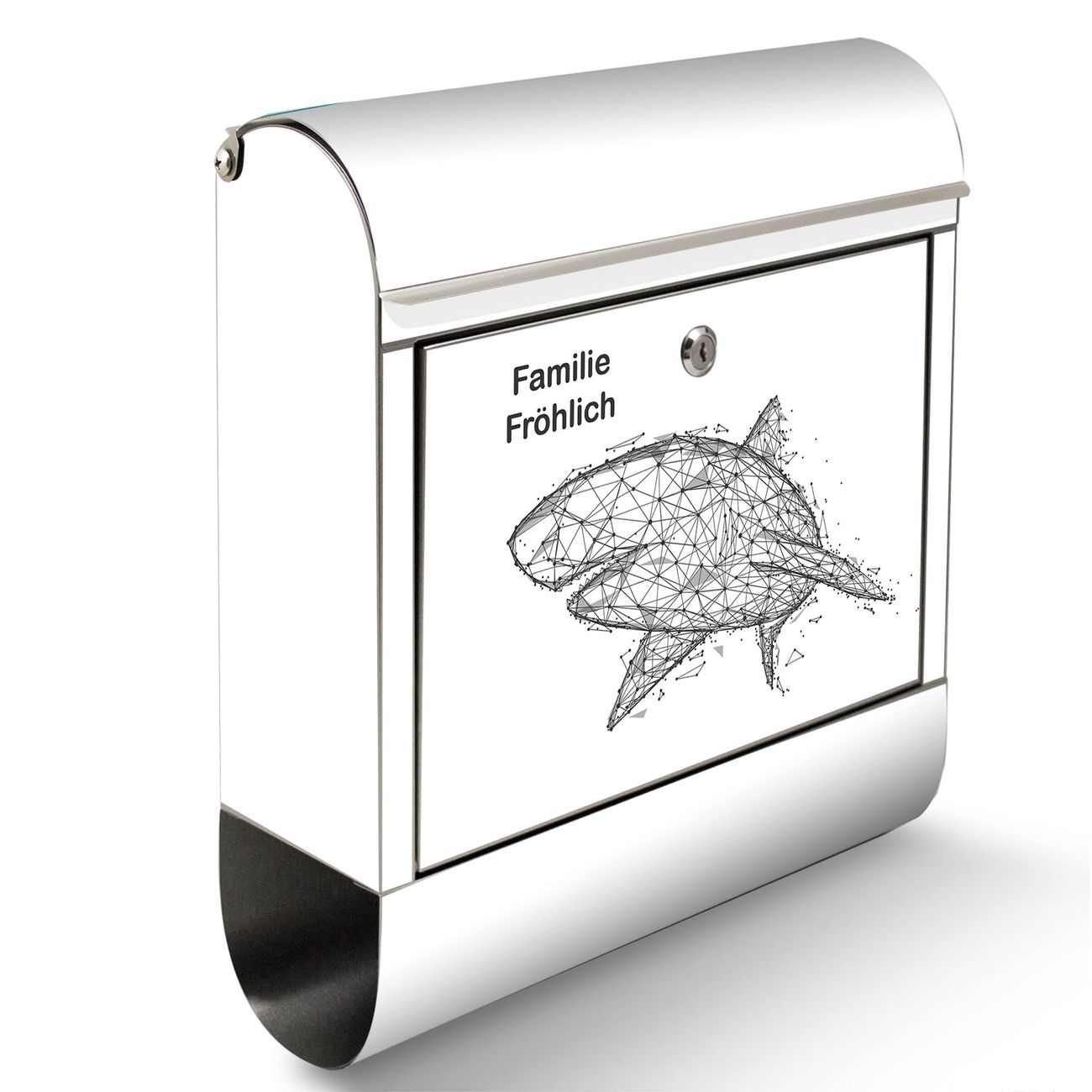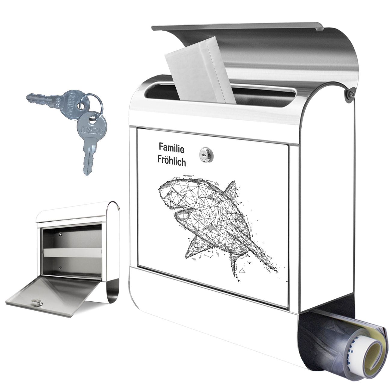 Wandbriefkasten Edelstahl Motiv Hai abstrakt 2