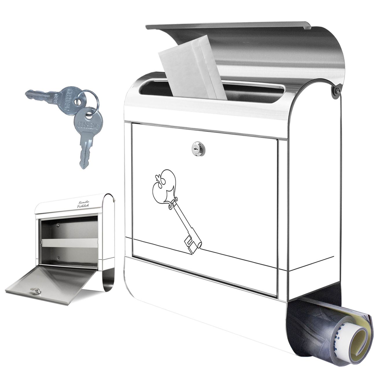 Wandbriefkasten Edelstahl Motiv Hausherrin Schlüssel 2