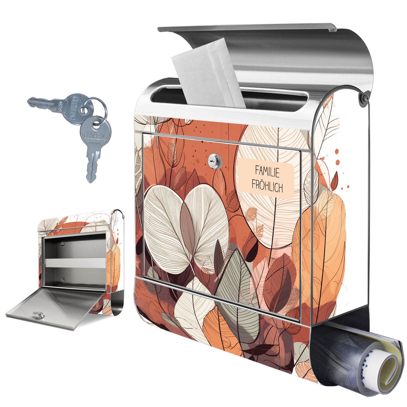 Wandbriefkasten Edelstahl Motiv Herbstliche Blätterpracht