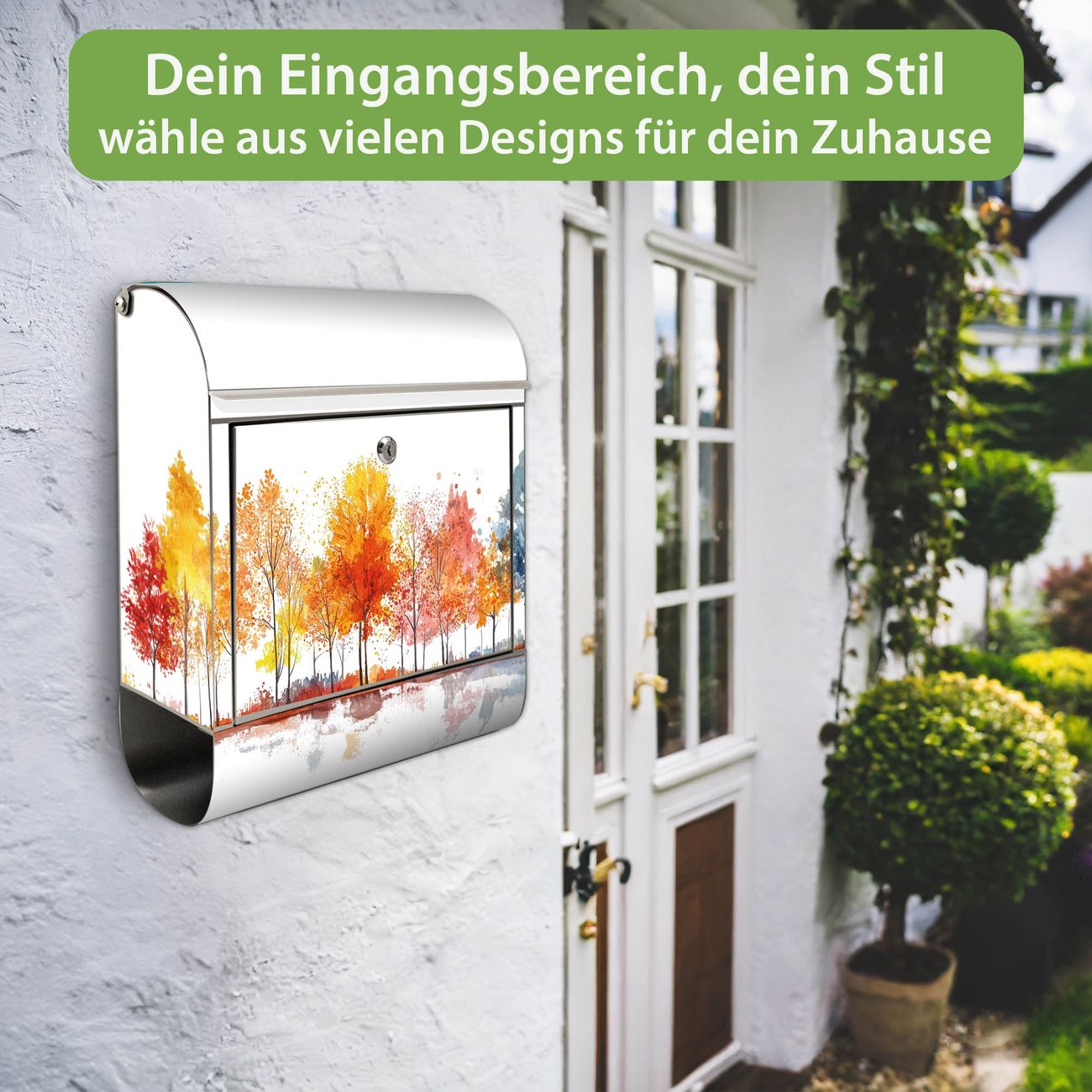 Wandbriefkasten Edelstahl Motiv Herbstlicher Baumzauber