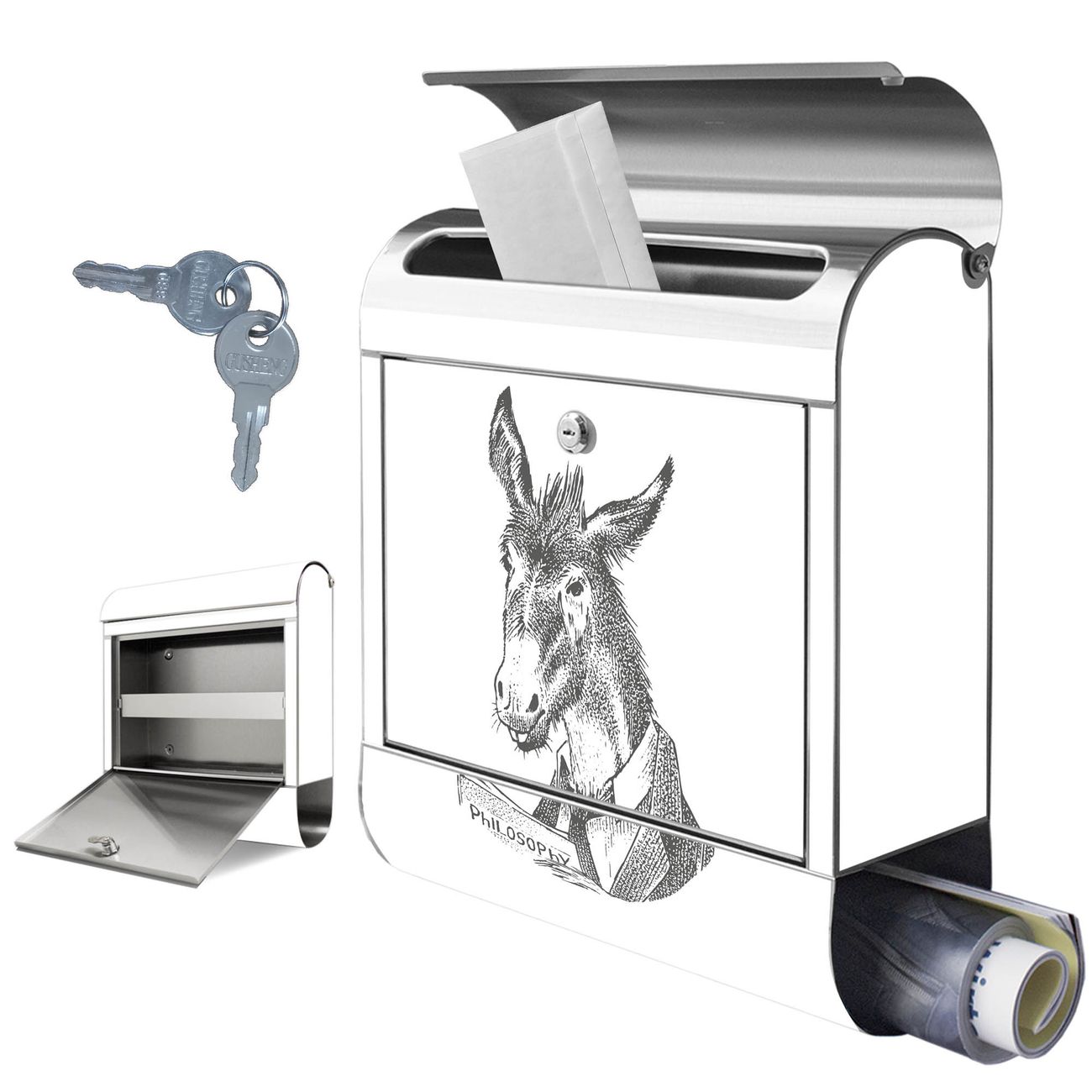 Wandbriefkasten Edelstahl Motiv Herr Esel 2