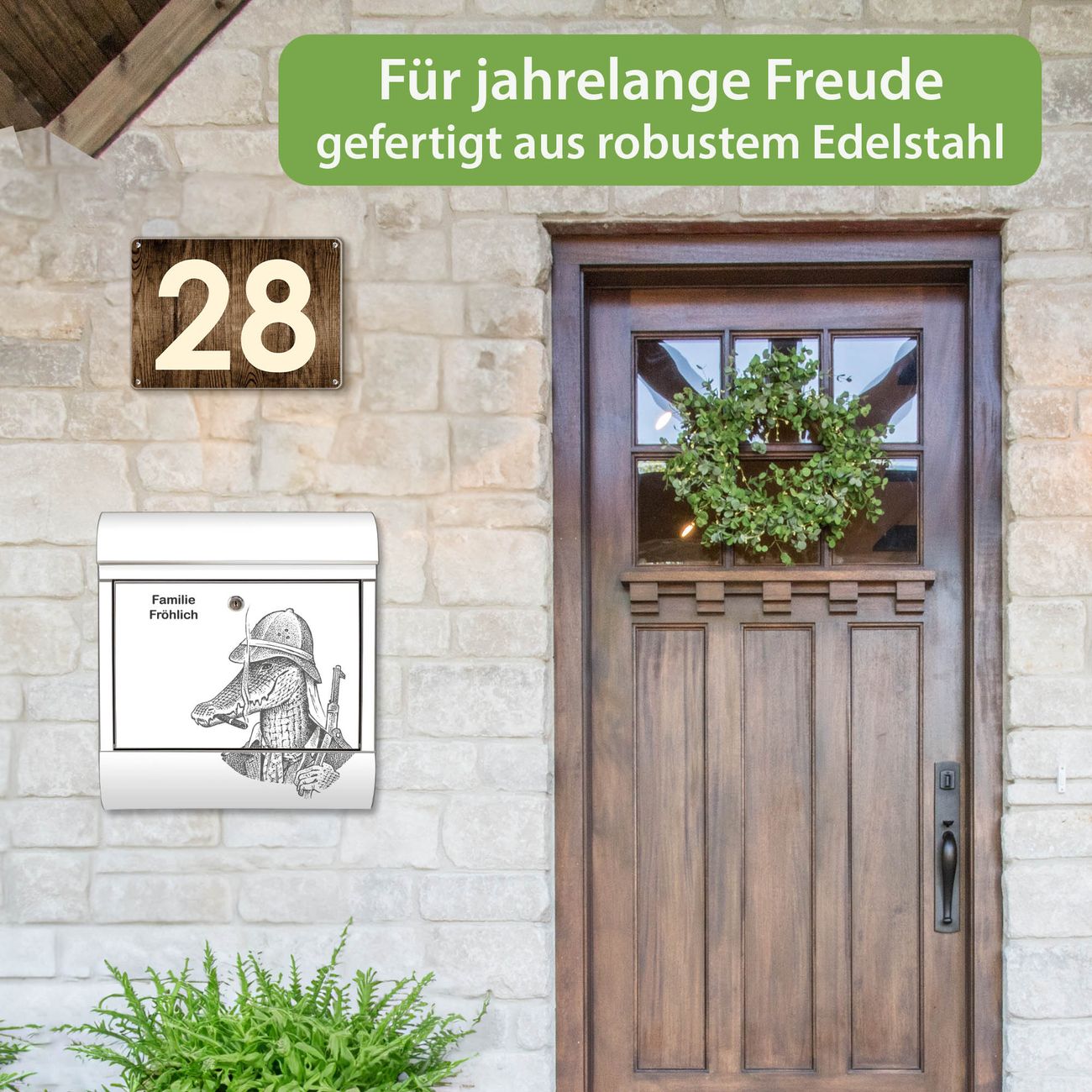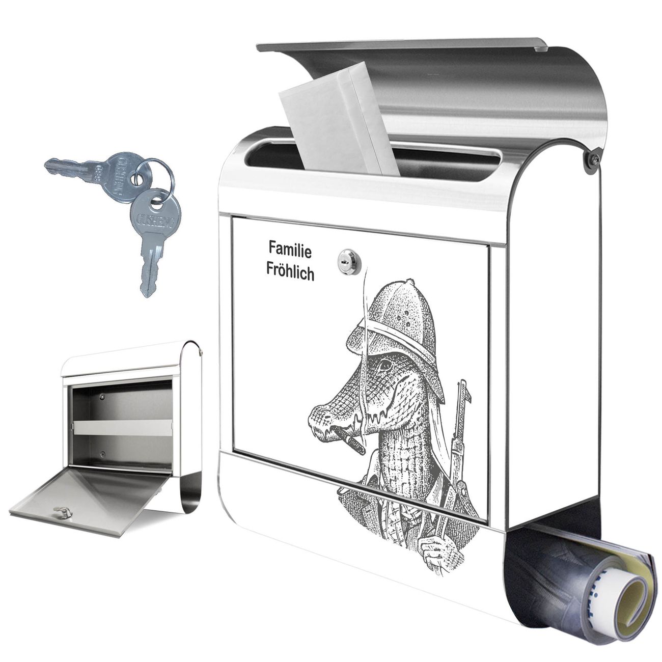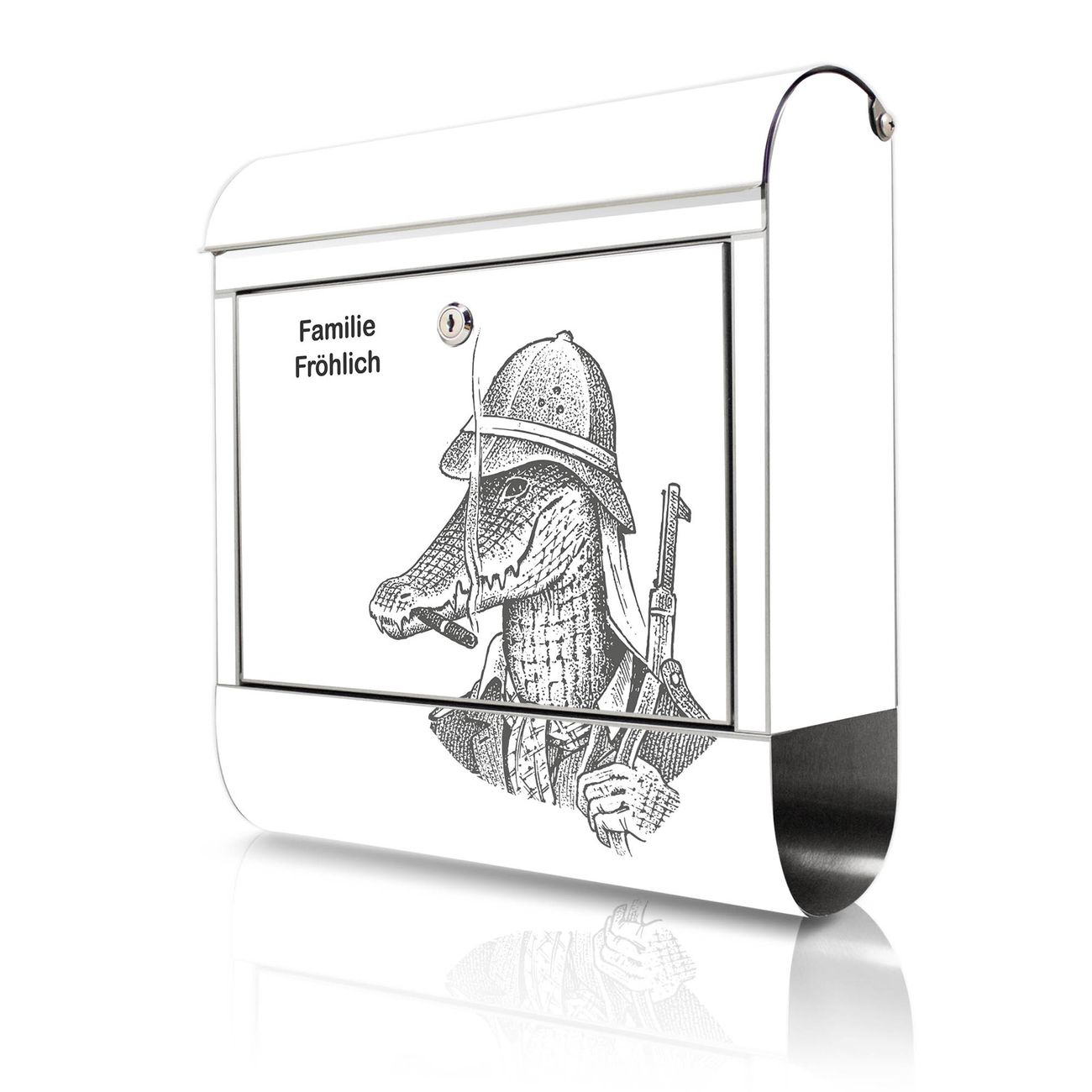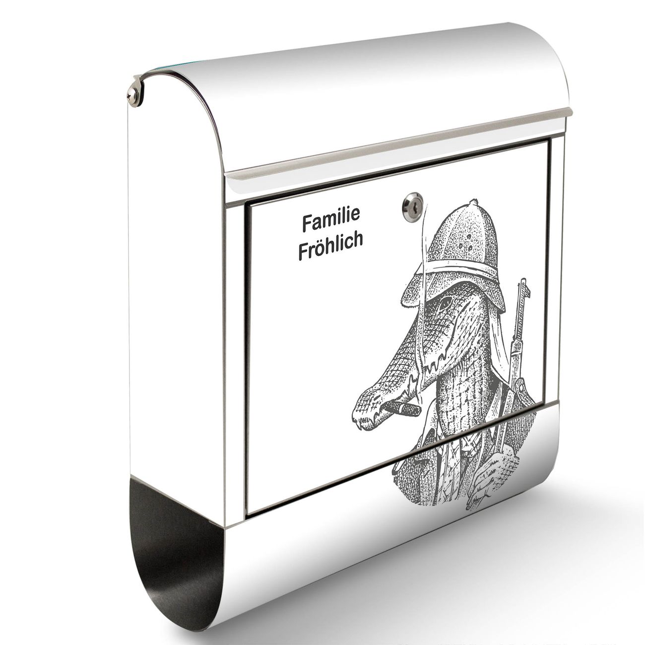 Wandbriefkasten Edelstahl Motiv Herr Krokodil 2