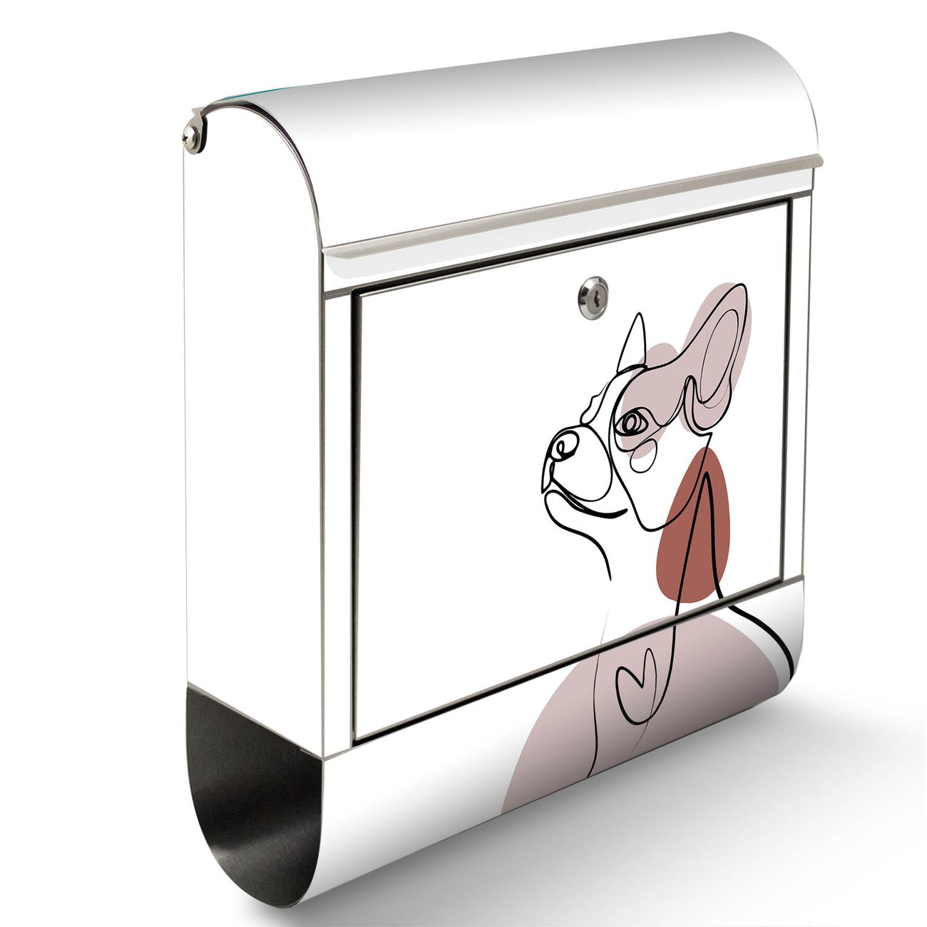 Wandbriefkasten Edelstahl Motiv Hundeporträt Lineart