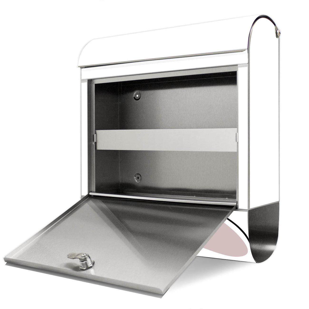 FUNKTION: Der banjado Edelstahl Briefkasten mit Motiv Motiv Hundeporträt Lineart bietet Ihnen mit seinem Fassungsvermögen genügend Platz auch für große A4 Sendungen. Das integrierte Zeitungsfach eignet sich hervorragend um unkompliziert die Tageszeitung zu fassen. Auf Wunsch können Sie bei uns den passenden Ständer kaufen und so aus dem Wandbriefkasten einen Standbriefkasten machen. DESIGN: Der Motivbriefkasten hat ein sehr ansprechendes und ausgefallenes Design, damit entlocken Sie Ihren Nachbarn und dem Postboten ein Lächeln. Heben Sie Sich ab von der tristen grauen Masse ohne auf Funktionalität zu verzichten. DETAILS: Der Design Briefkasten mit Motiv Motiv Hundeporträt Lineart besteht aus hochwertigem 18/0 Edelstahl. Das Motiv besteht aus einer wetter- und UV-resistenten Folie, die mit einem Schutzlaminat überzogen ist. Der Briefkasten wird mit Montagematerial und zwei Schlüsseln geliefert. NUTZEN: Sie können diesen Briefkasten sowohl als Wandbriefkasten montieren oder einen passenden Ständer auswählen und als Standbriefkasten einbetonieren. Die Größe bietet genügend Platz für Sendungen aller Art, das hochwertige Edelstahl ist rostfrei und die Motivfolie absolut wetterfest. SCHUTZ: Um Ihre Post optimal vor Witterungseinflüssen wie Starkregen zu schützen, empfehlen wir, den Briefkasten geschützt anzubringen. BANJADO: Ihr Briefkasten wird in Sachsen in einer kleinen Manufaktur von Hand veredelt. Die Motivfolie ist lösungsmittelfrei und schutzlaminiert, dies sorgt für einen langen Halt. Wir legen großen Wert auf die Verbindung von Funktionalität und Design. Sie erhalten Handarbeit aus Sachsen.