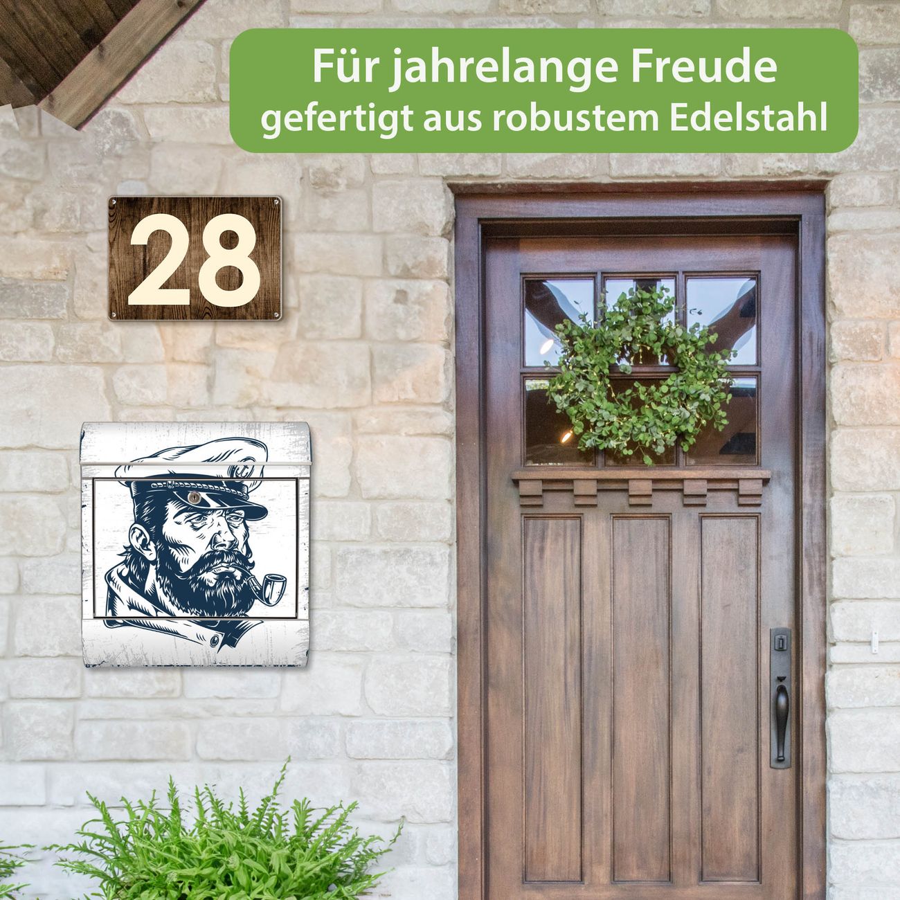 Wandbriefkasten Edelstahl Motiv Kapitän Portrait