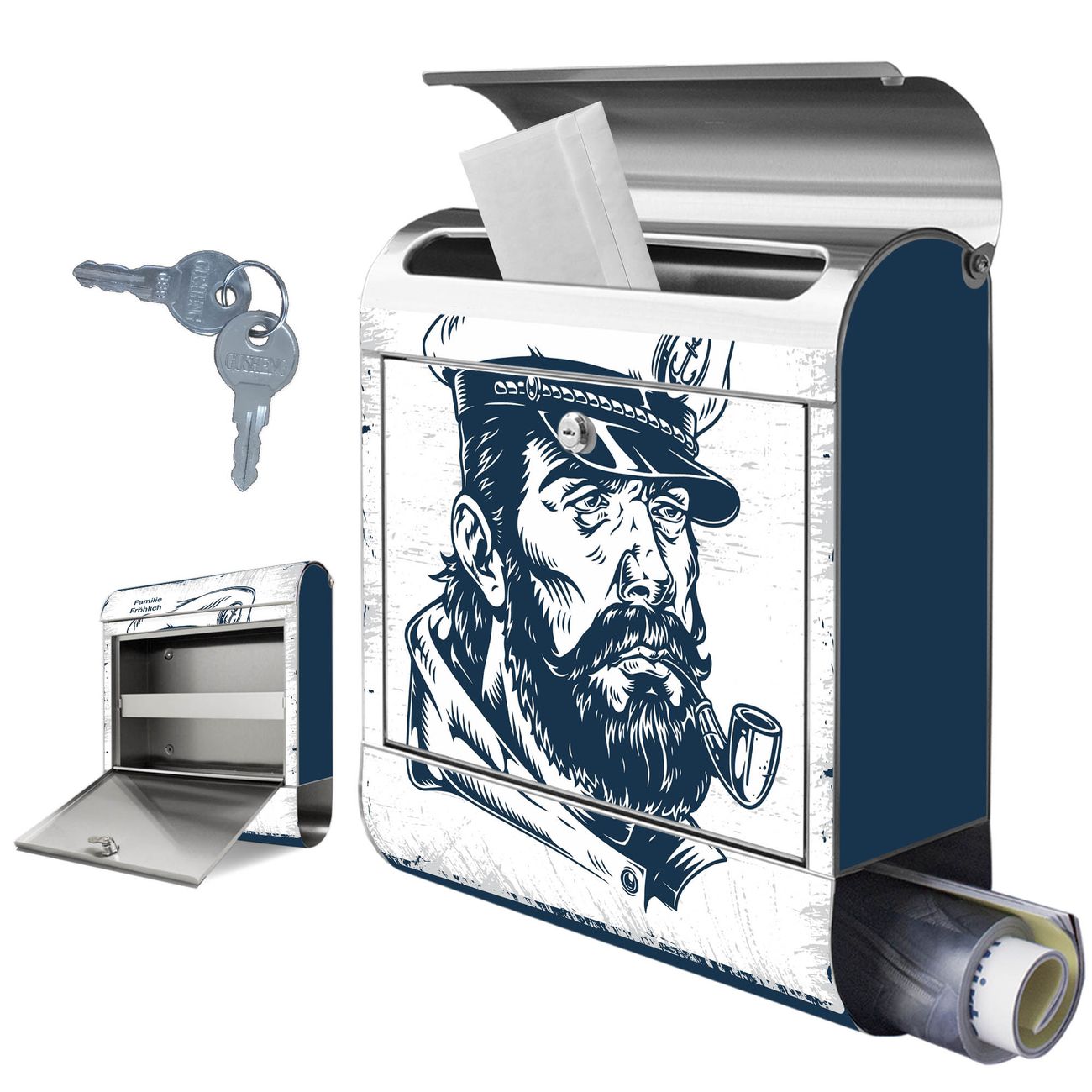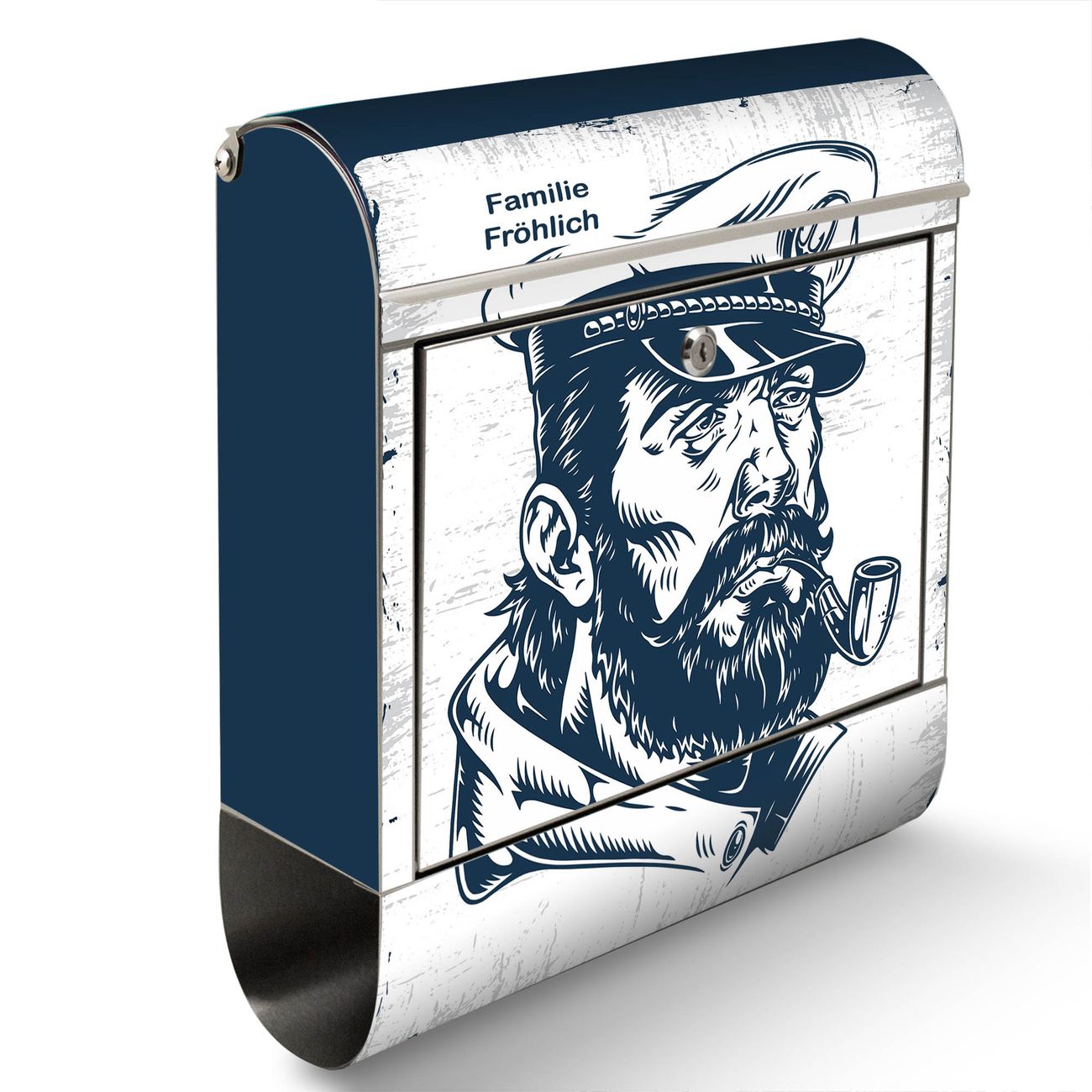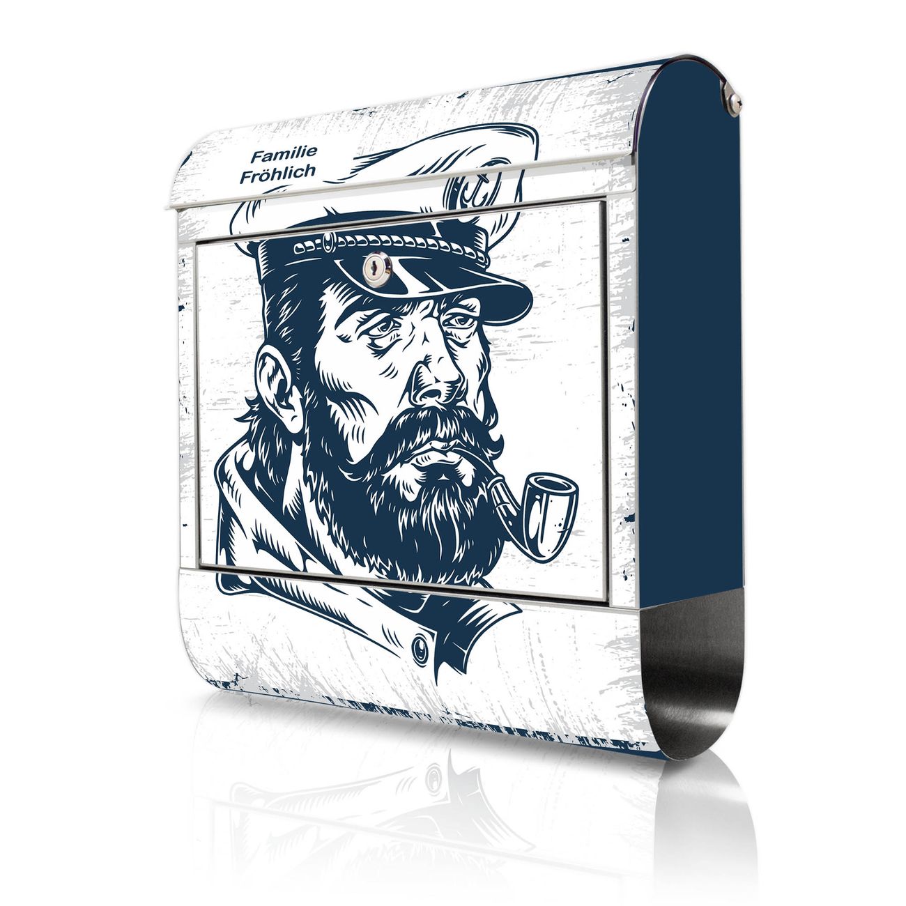 Wandbriefkasten Edelstahl Motiv Kapitän Portrait