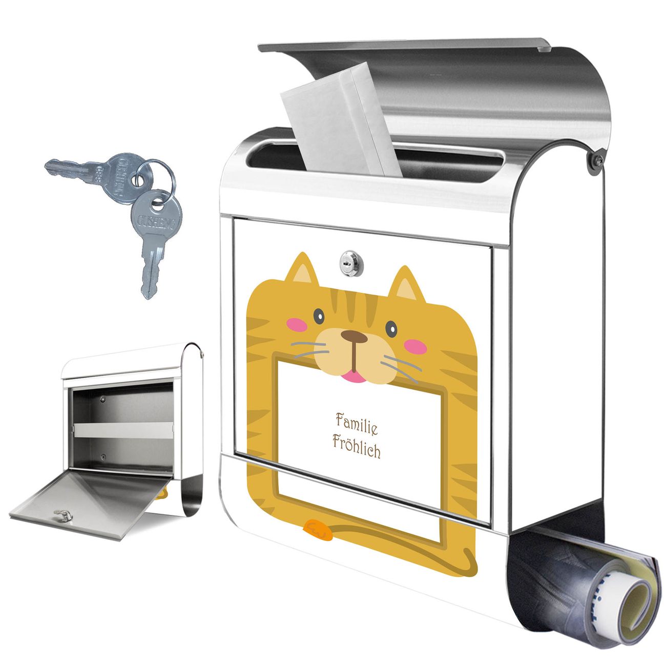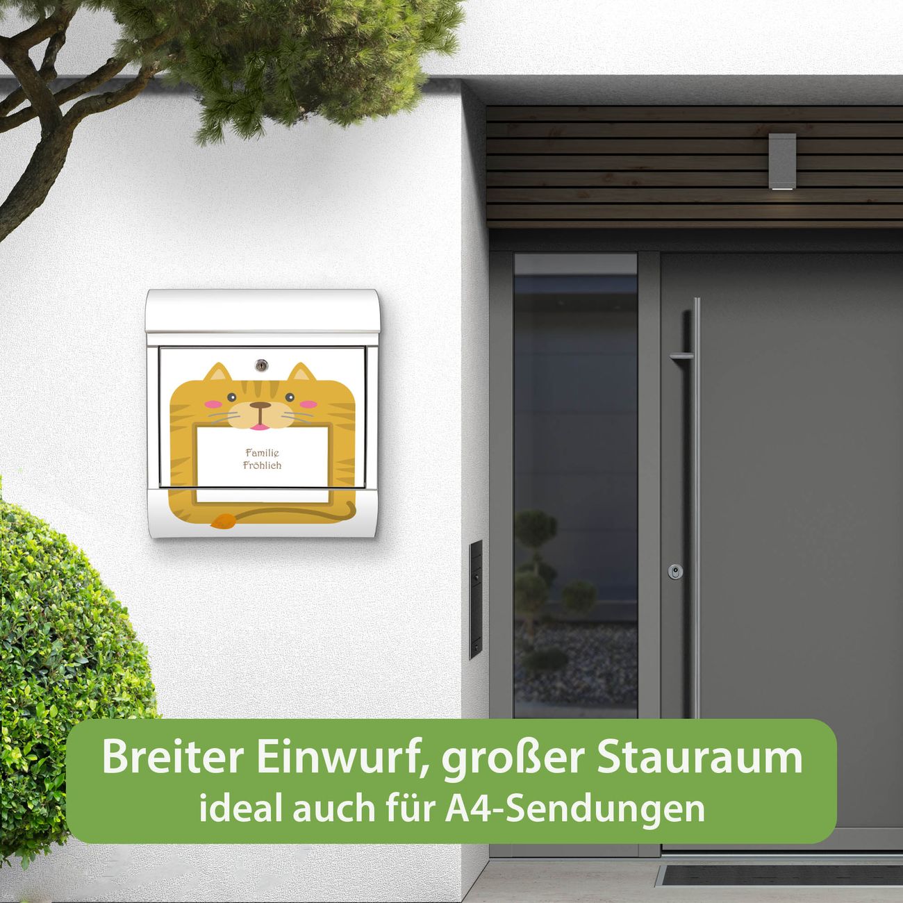 Wandbriefkasten Edelstahl Motiv Katze Bilderrahmen