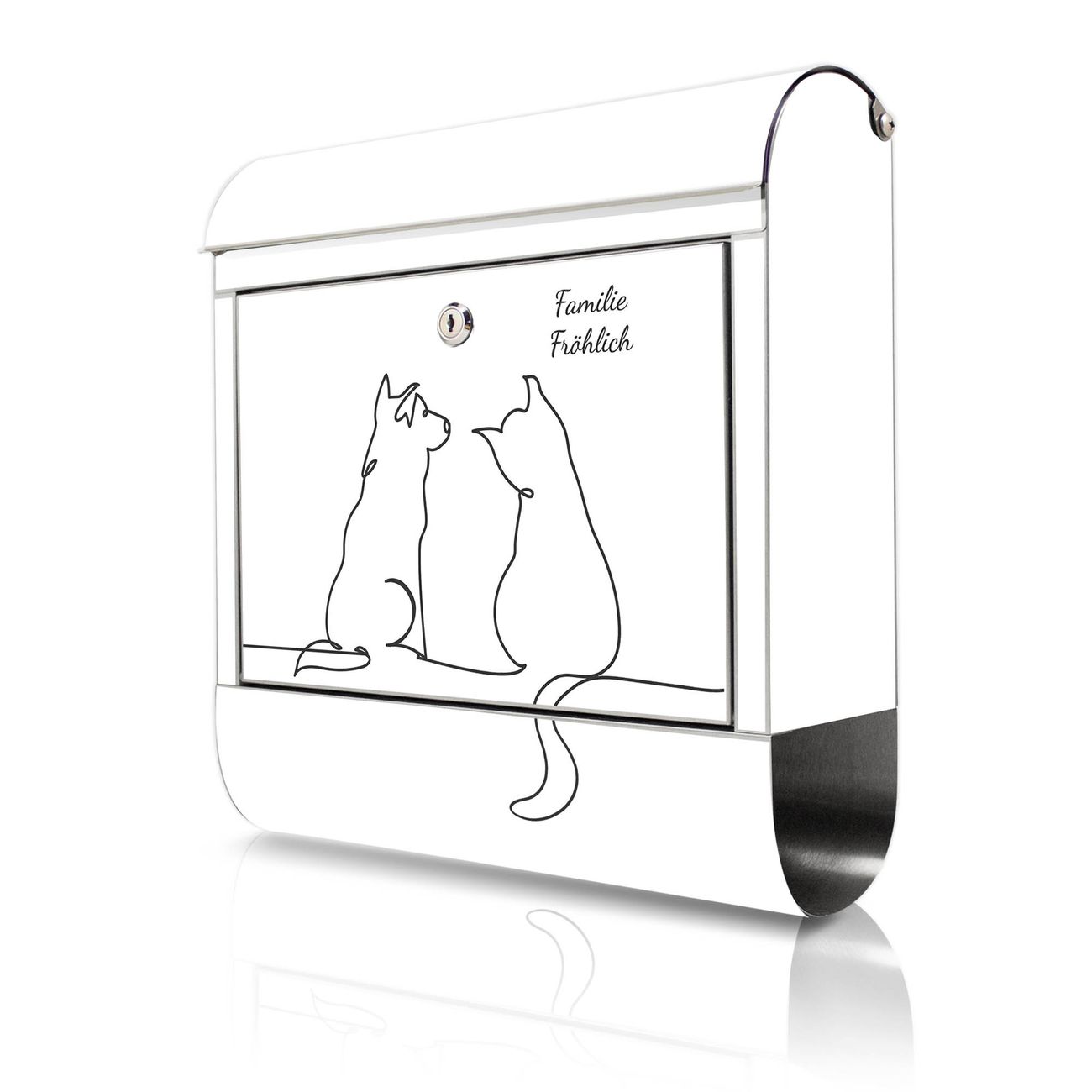 Wandbriefkasten Edelstahl Motiv Katzen-Hunde-Freundschaft Lineart