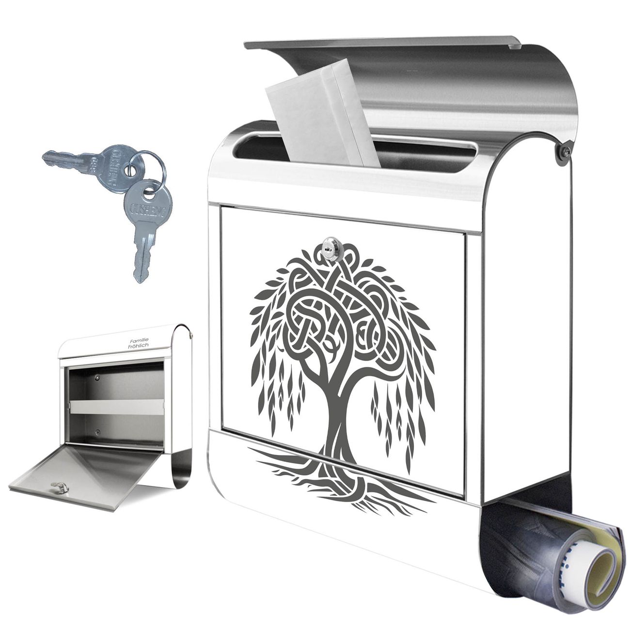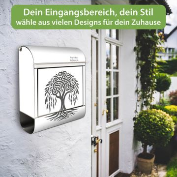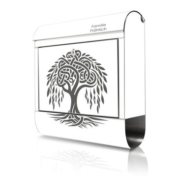 Wandbriefkasten Edelstahl Motiv Keltischer Baum des Lebens