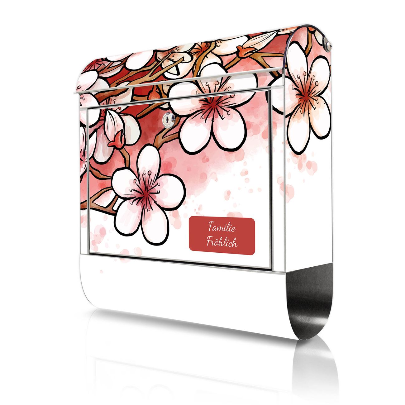 Wandbriefkasten Edelstahl Motiv Kirschblütentraum