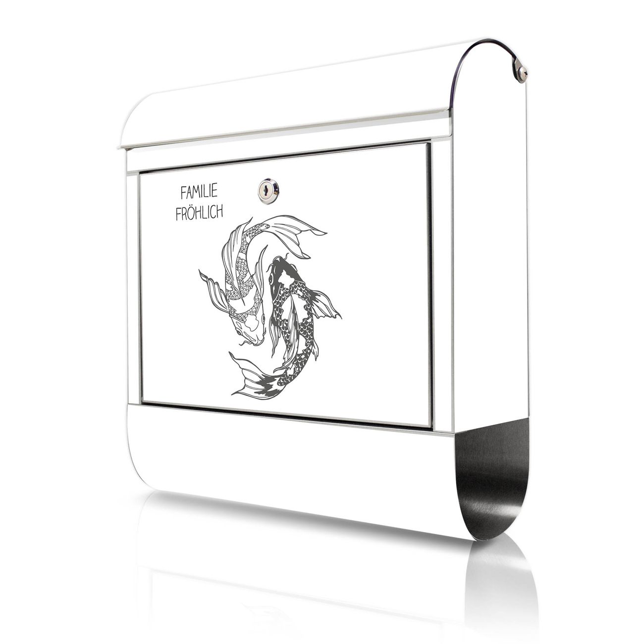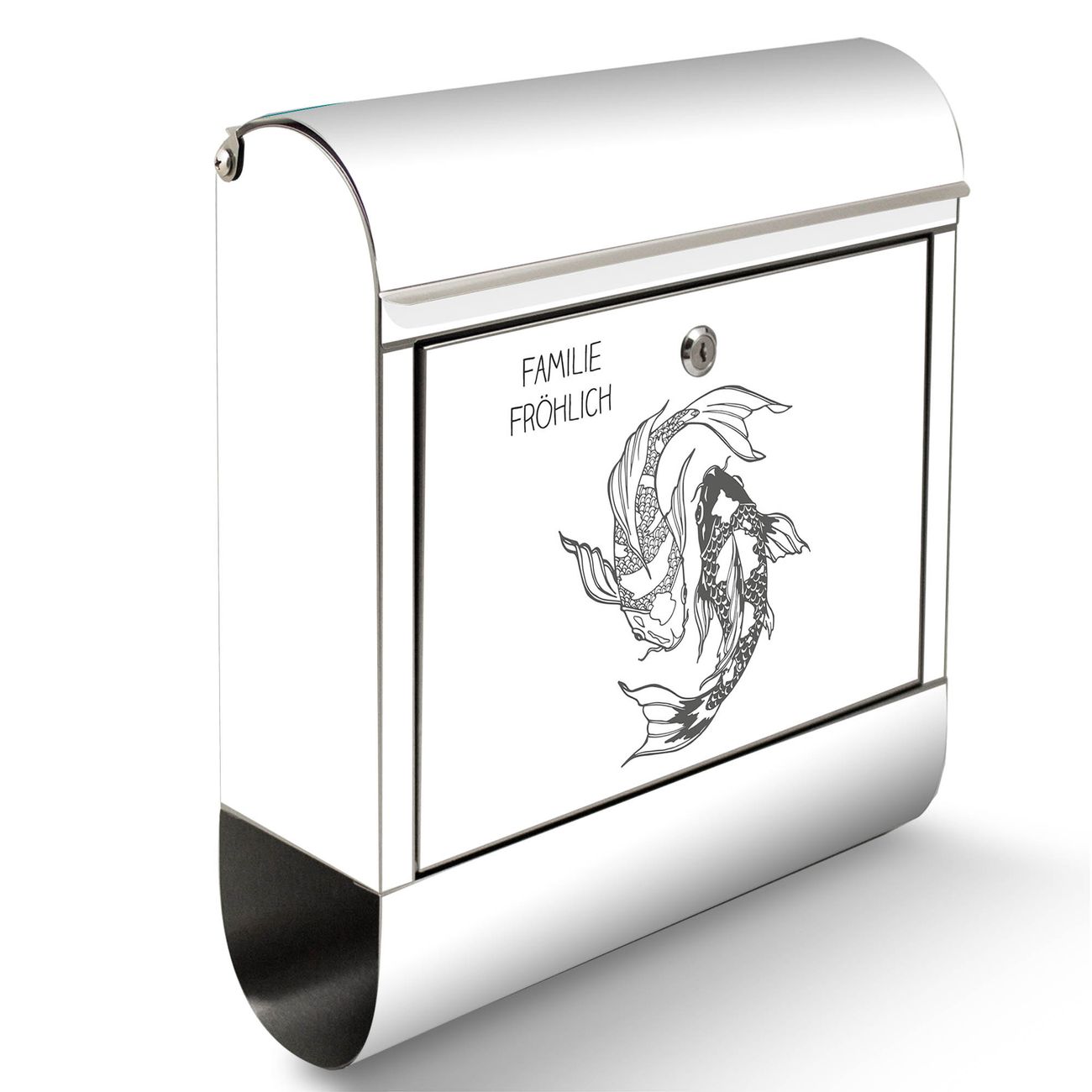 Wandbriefkasten Edelstahl Motiv Koi Paar 3