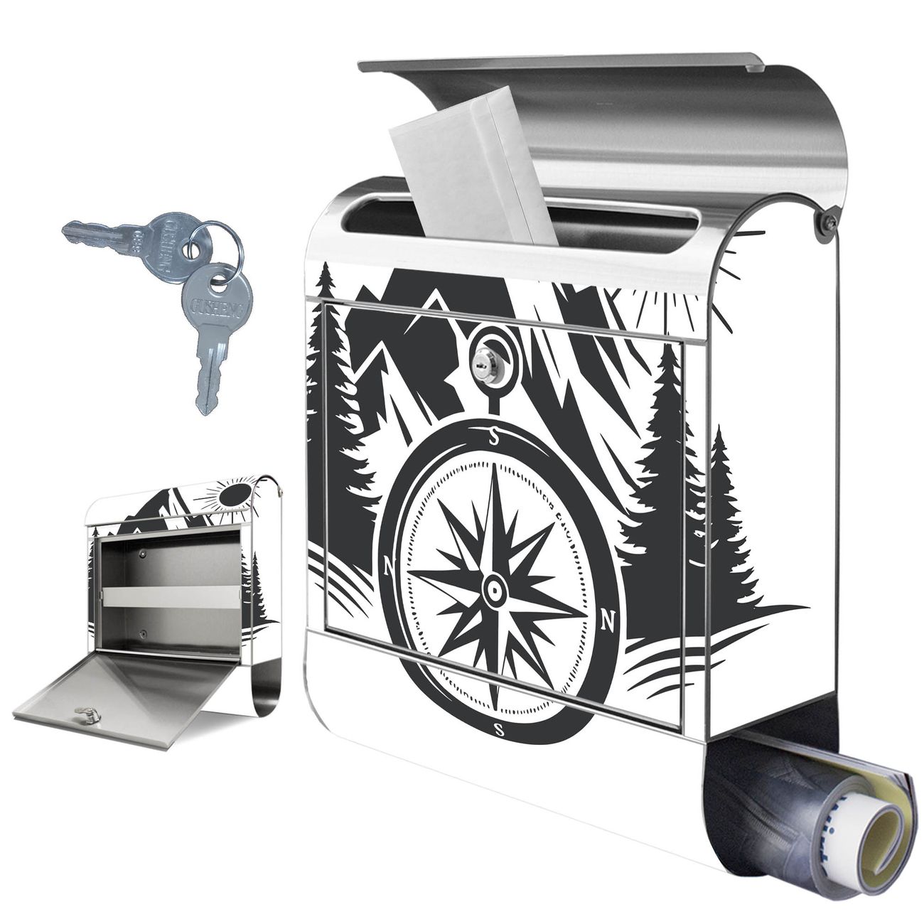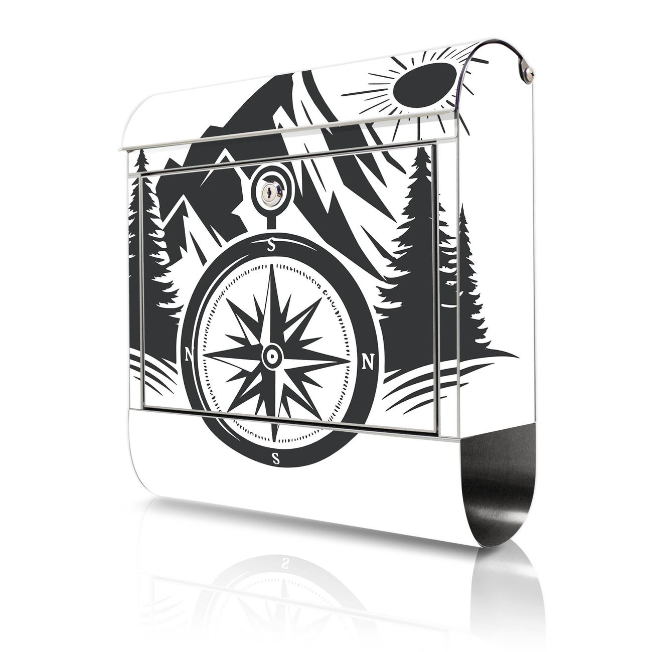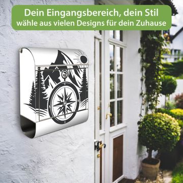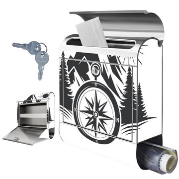 Wandbriefkasten Edelstahl Motiv Kompass in der Wildnis