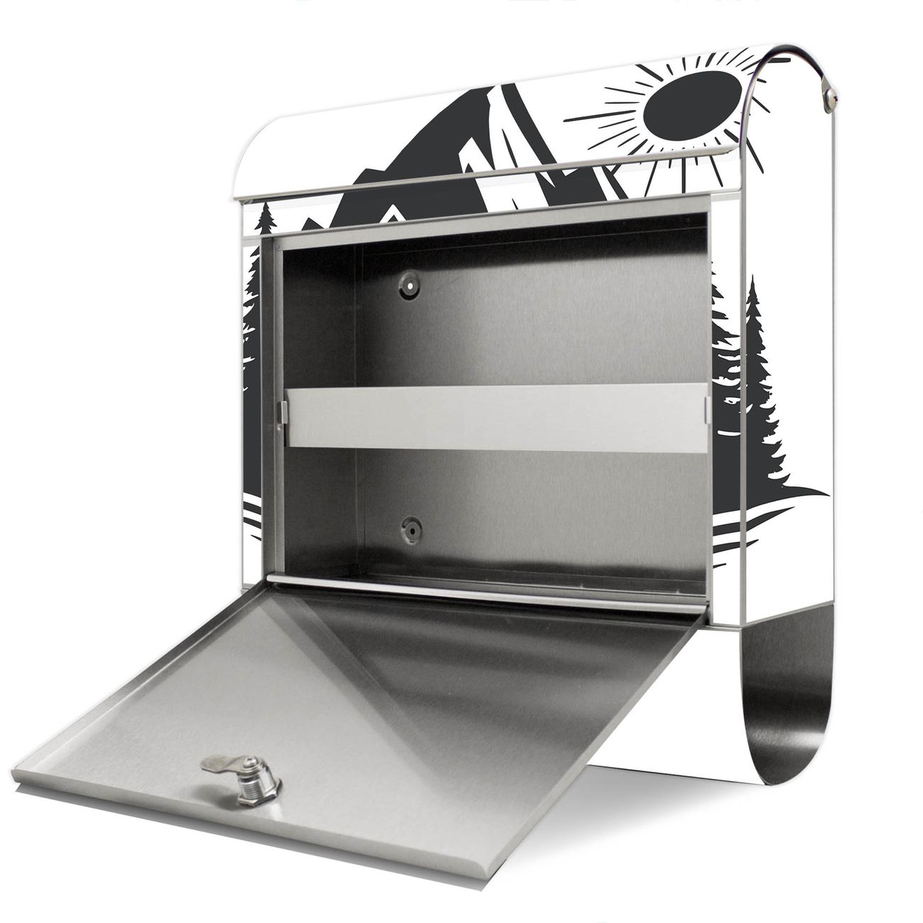 FUNKTION: Der banjado Edelstahl Briefkasten mit Motiv Motiv Kompass in der Wildnis bietet Ihnen mit seinem Fassungsvermögen genügend Platz auch für große A4 Sendungen. Das integrierte Zeitungsfach eignet sich hervorragend um unkompliziert die Tageszeitung zu fassen. Auf Wunsch können Sie bei uns den passenden Ständer kaufen und so aus dem Wandbriefkasten einen Standbriefkasten machen. DESIGN: Der Motivbriefkasten hat ein sehr ansprechendes und ausgefallenes Design, damit entlocken Sie Ihren Nachbarn und dem Postboten ein Lächeln. Heben Sie Sich ab von der tristen grauen Masse ohne auf Funktionalität zu verzichten. DETAILS: Der Design Briefkasten mit Motiv Motiv Kompass in der Wildnis besteht aus hochwertigem 18/0 Edelstahl. Das Motiv besteht aus einer wetter- und UV-resistenten Folie, die mit einem Schutzlaminat überzogen ist. Der Briefkasten wird mit Montagematerial und zwei Schlüsseln geliefert. NUTZEN: Sie können diesen Briefkasten sowohl als Wandbriefkasten montieren oder einen passenden Ständer auswählen und als Standbriefkasten einbetonieren. Die Größe bietet genügend Platz für Sendungen aller Art, das hochwertige Edelstahl ist rostfrei und die Motivfolie absolut wetterfest. SCHUTZ: Um Ihre Post optimal vor Witterungseinflüssen wie Starkregen zu schützen, empfehlen wir, den Briefkasten geschützt anzubringen. BANJADO: Ihr Briefkasten wird in Sachsen in einer kleinen Manufaktur von Hand veredelt. Die Motivfolie ist lösungsmittelfrei und schutzlaminiert, dies sorgt für einen langen Halt. Wir legen großen Wert auf die Verbindung von Funktionalität und Design. Sie erhalten Handarbeit aus Sachsen.