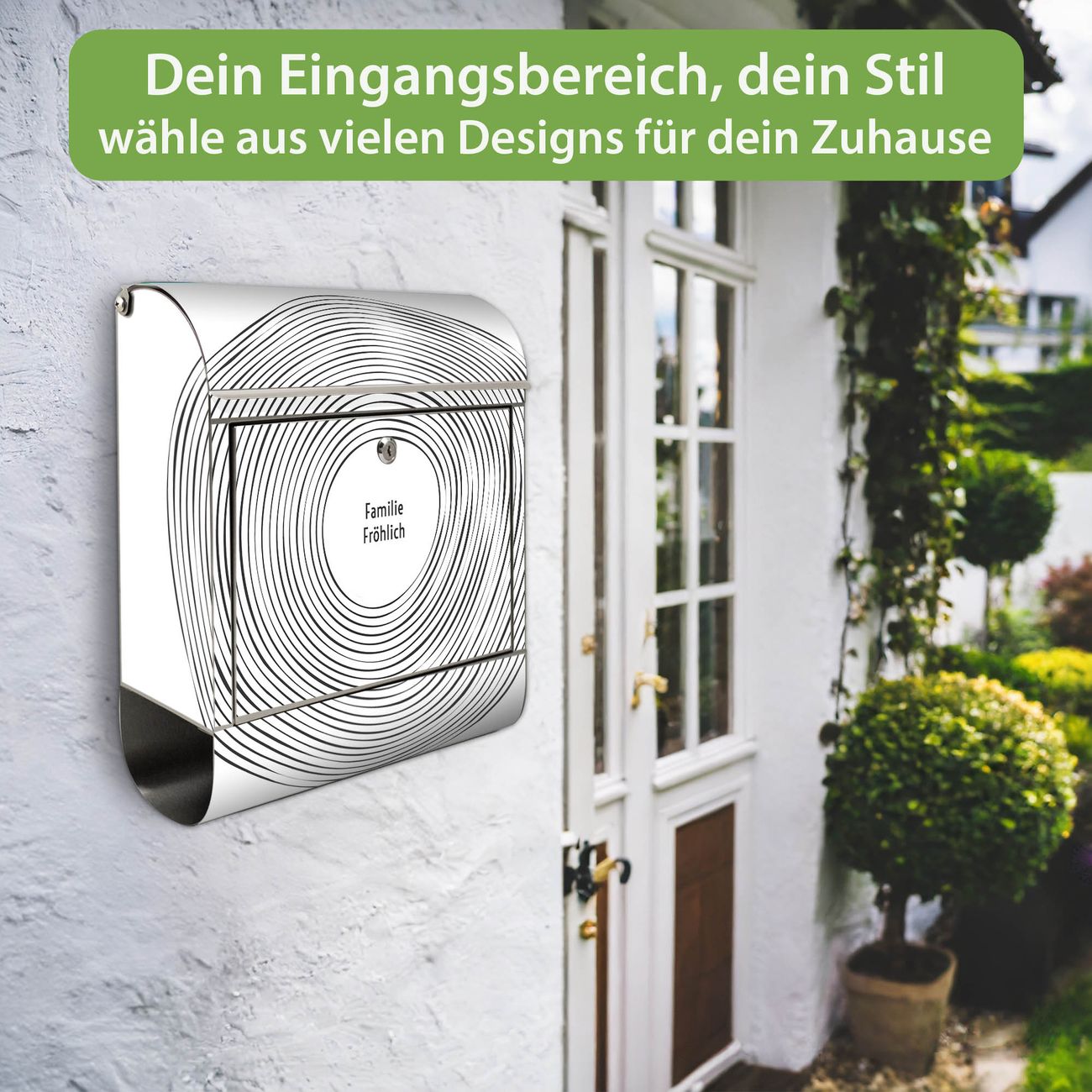 Wandbriefkasten Edelstahl Motiv Konzentrische Kreise