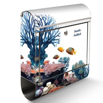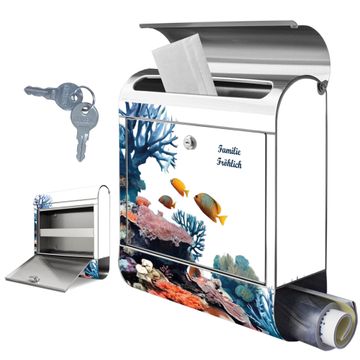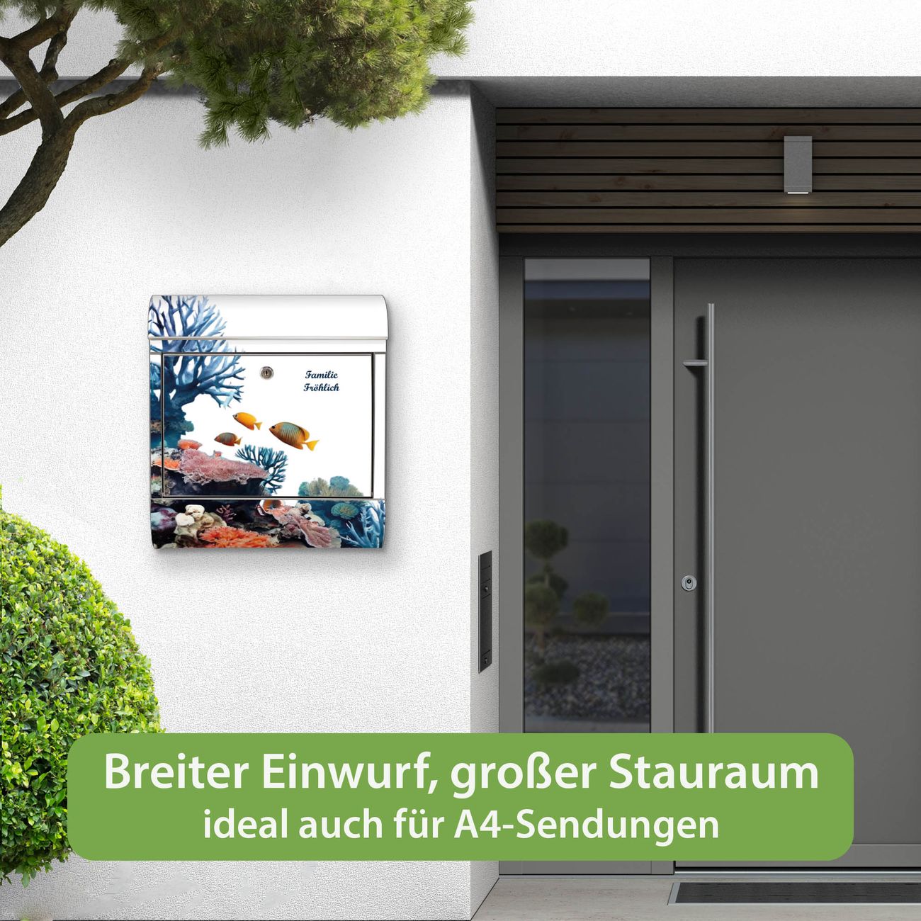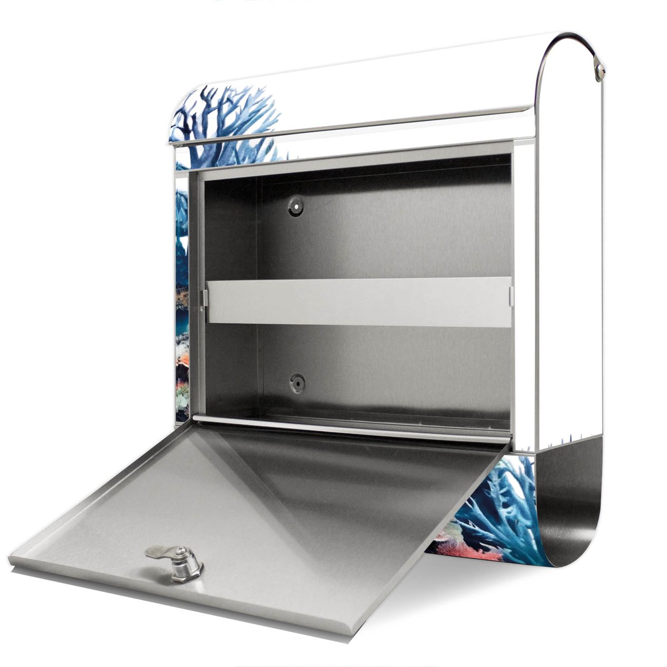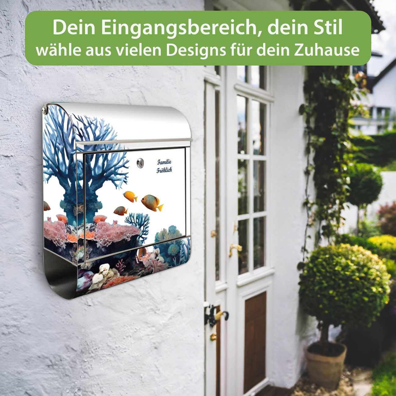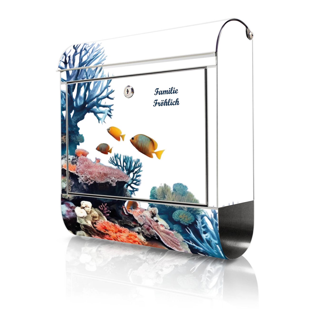 Wandbriefkasten Edelstahl Motiv Korallenriff und Fische